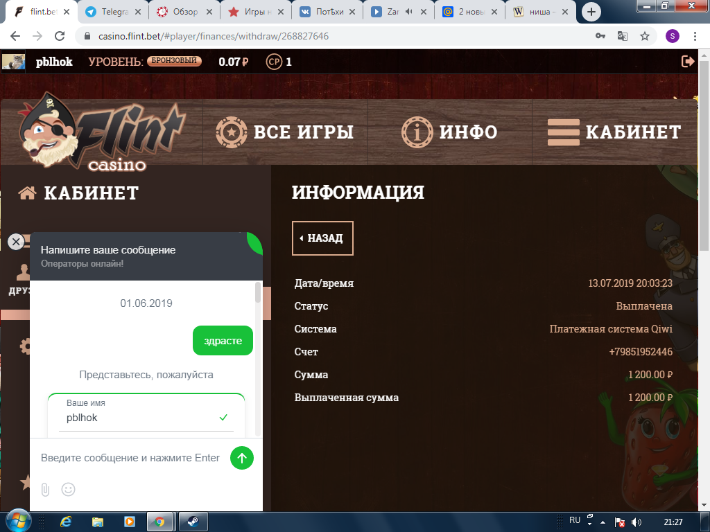 Я совсем недавно прокачал в этом казино статус на одну ступеньку от новичка, т.е. "БРОНЗОВЫЙ" и увидел очень приятную плюшку: flintikmmm.png