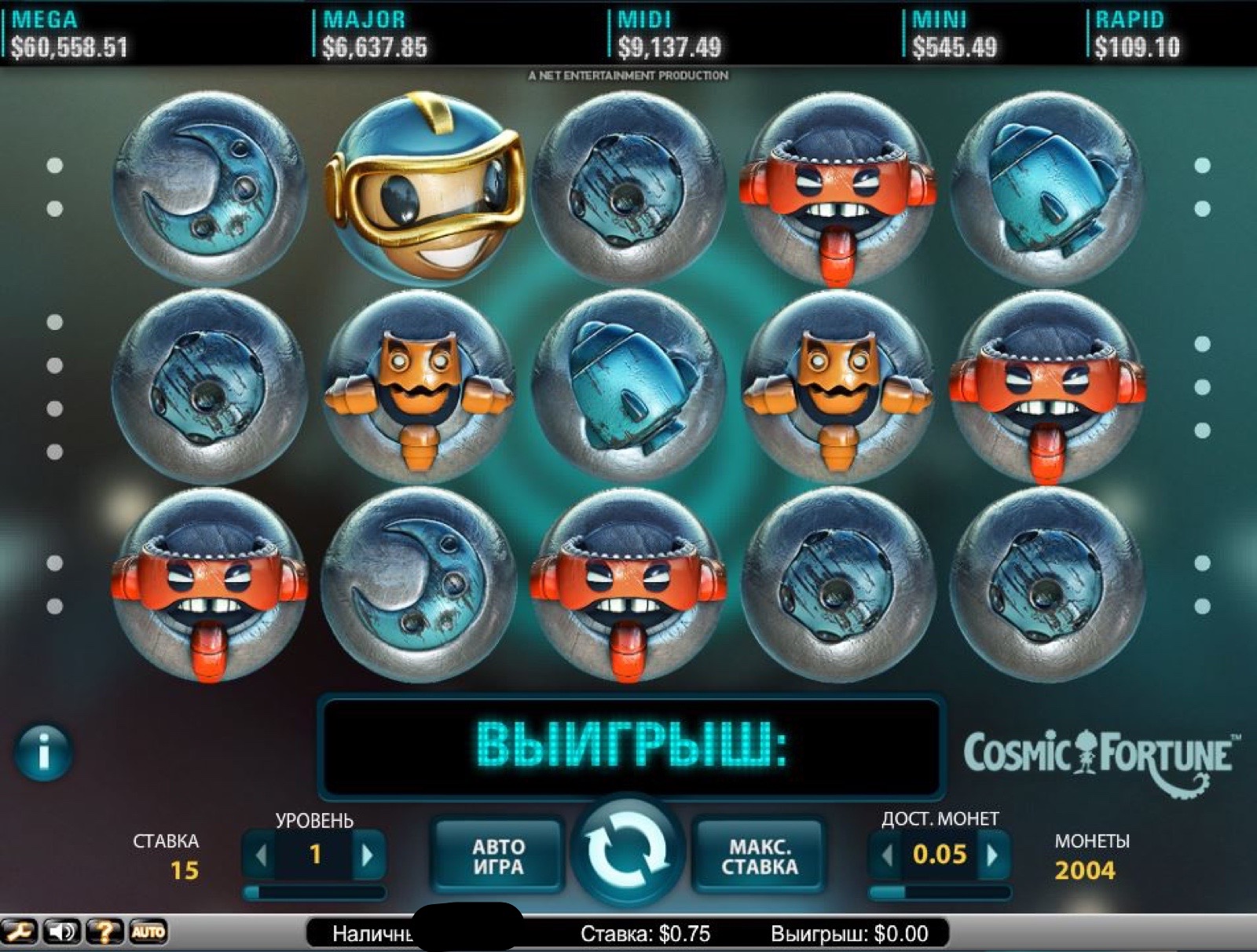 В игровом автомате Cosmic Fortune ставки 0.25 USD/EUR и 12.5 RUB