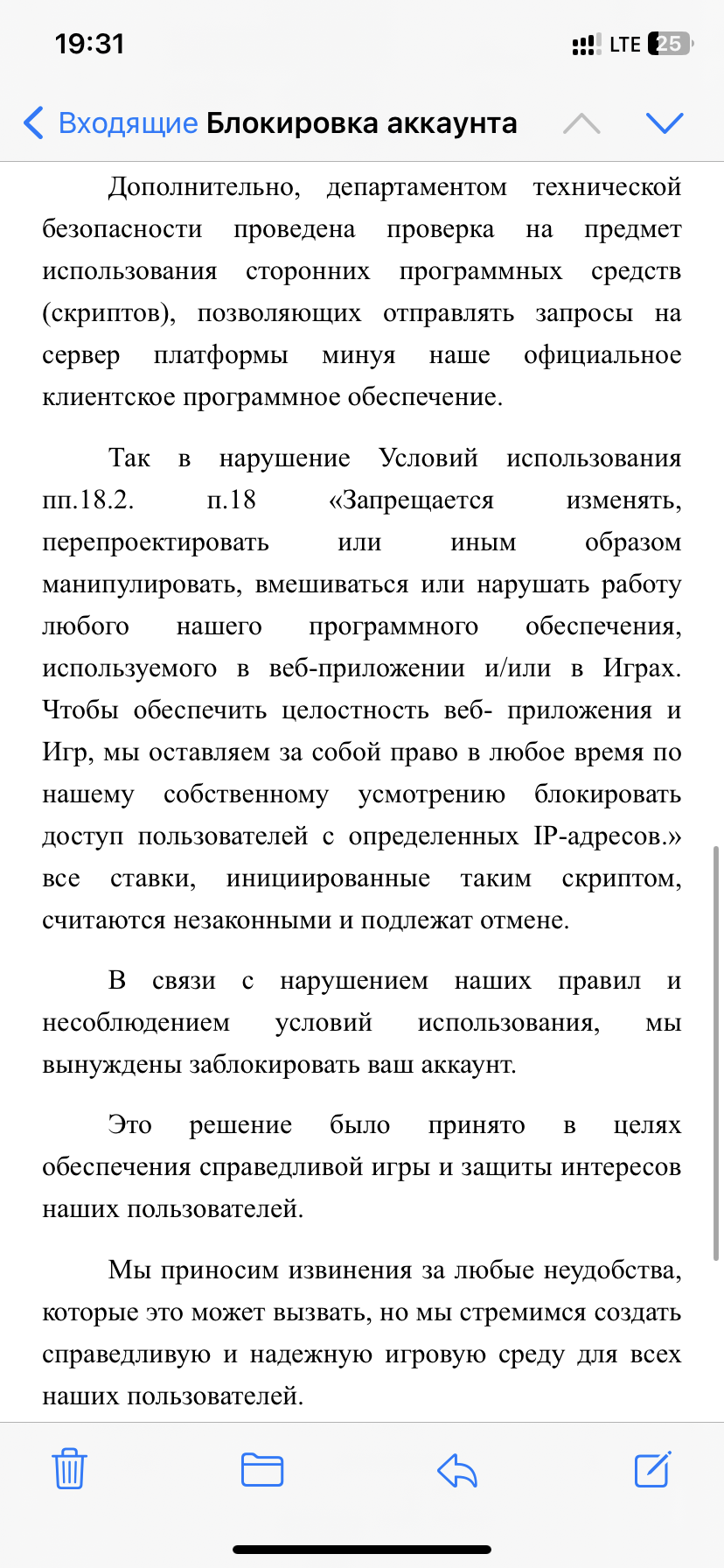 Добрый день. Мы за честную и честный выигрыш. Если игрок использовал ПО, которое внедряется в логику и процесс игры, то расцениваем как мошеничество. Своими действиями игрок только уменьшает возможность выигрыша других пользователей. Для этого и существует Антифрод подразделение. Все честные выигрыши выплачены пользователям.