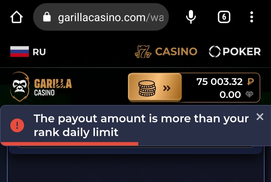 Само по себе казино не плохое, бонусы, ртп в слотах норм стоит, но ввплаты это какой-то цирк. Ввели лимиты с своими статусами которые просто дно. Вот моя ситуация, наделал депозитов 30+ тыс, брал бонусы всё отыграть не получалось, и оборотов в сумме сделал ставок больше ляма, в итоге максимальный вывод 15000р в сутки. Вот вдумайтесь я делаю депозитов за раз 30000р +, а вывести могу только 15000р.