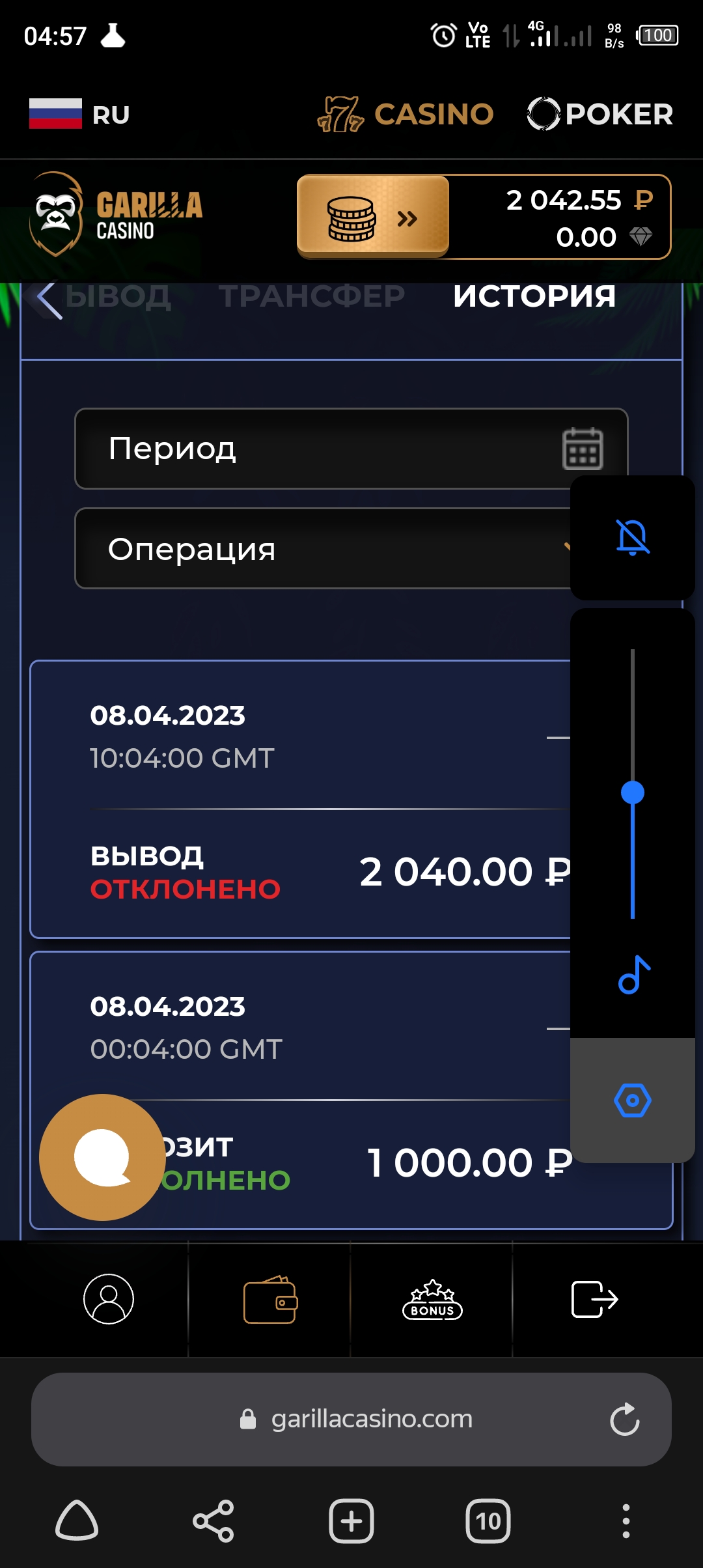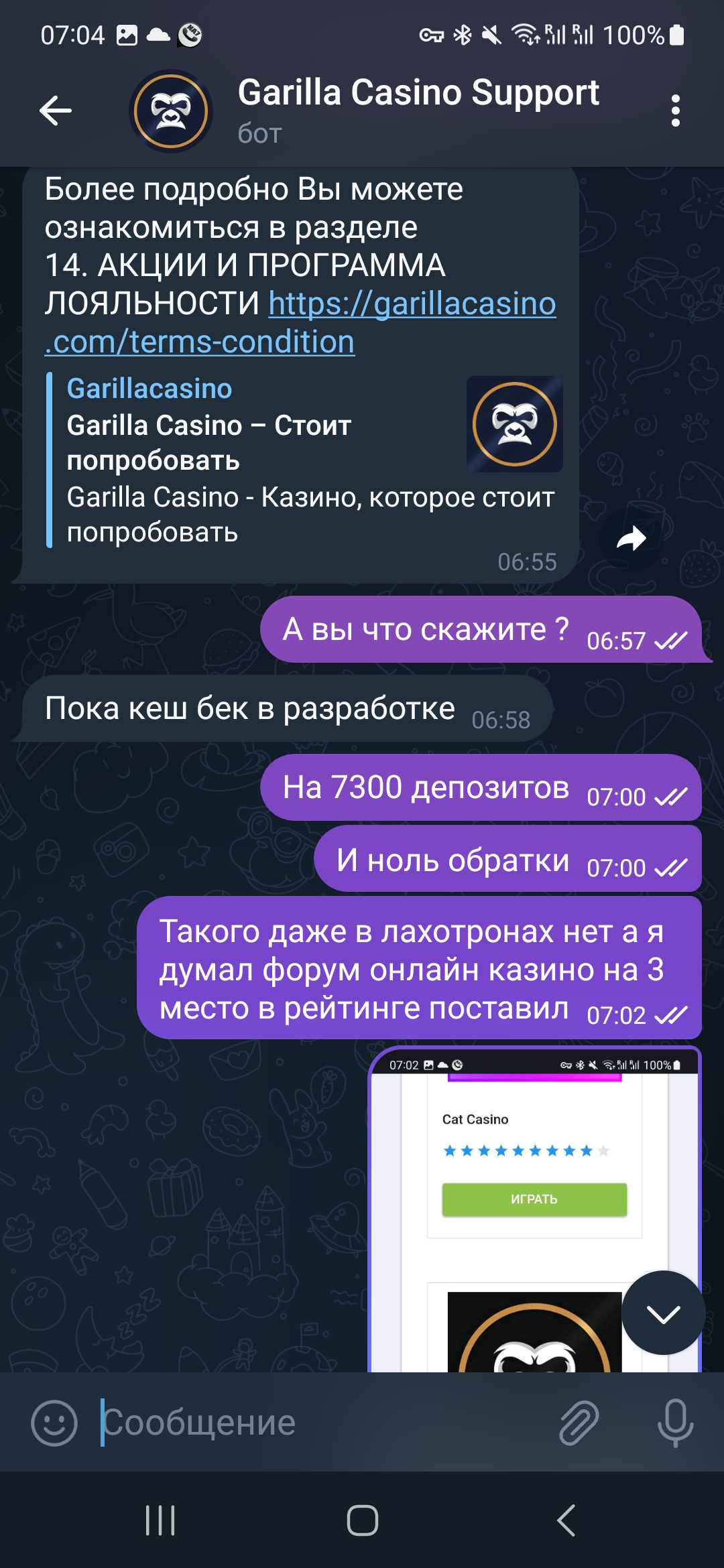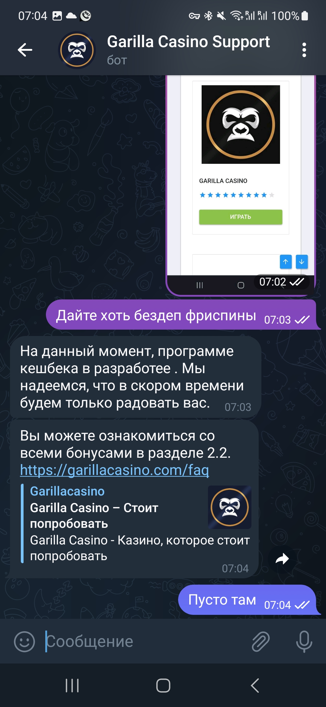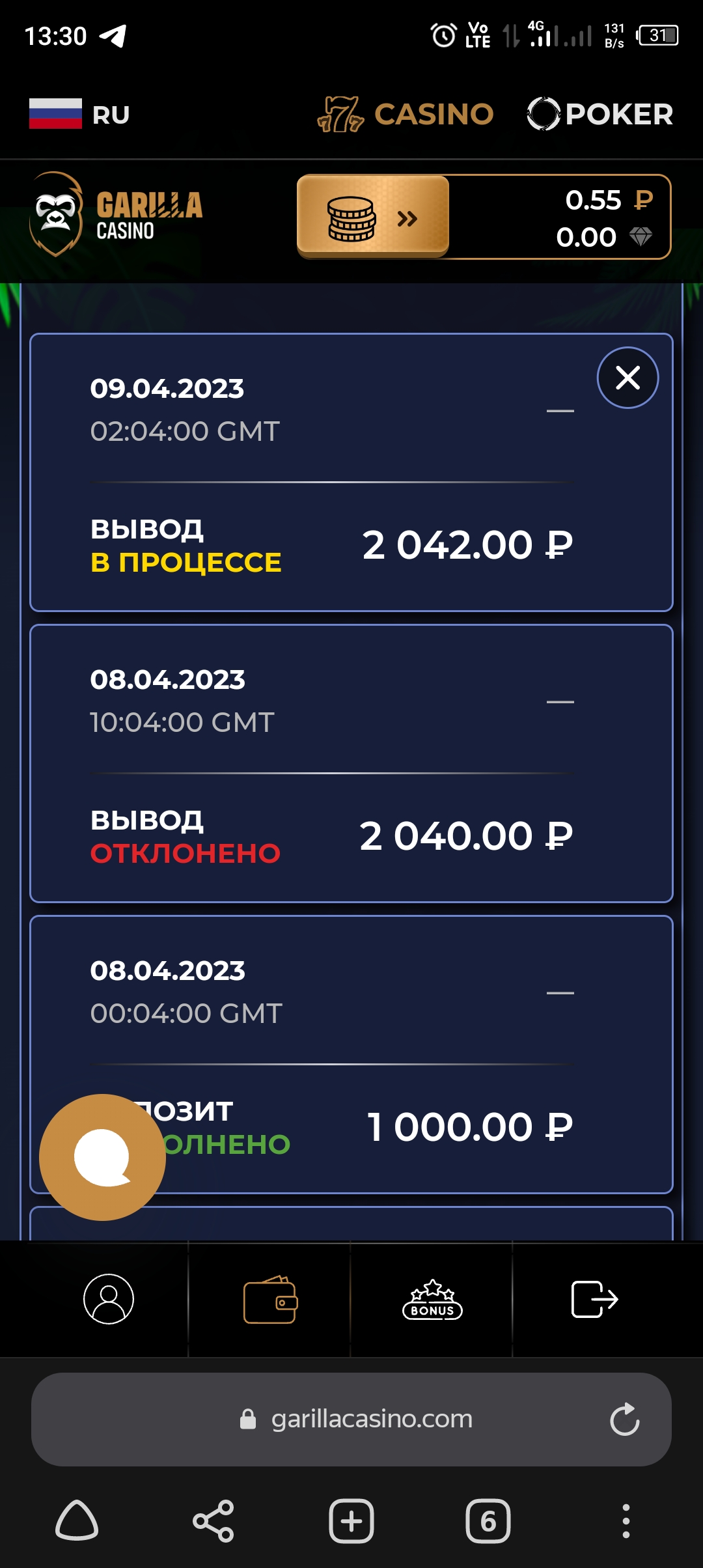 Здравствуйте. Судя по вашей статистике вам нравится у нас играть и выигрывать. Рады всегда видеть вас в Garilla Casino!Так для понимания вы постоянно заявляете что выплаты до 24 часов, так вот может перестать нести этот бред? так как за последние 5 выводов мне не разу не провели выплату раньше 24 часов, я уже молчу про отмены которые вы делаете иногда, и лимиты на вывод просто смешные. Висит очередная выплата 12 часов, не ужели нельзя тупо взять и провести ? Про какие очереди ваш сапорт постоянно рассказывает? Вы своих игроков за полных идиотов считаете? Провести заявку на выплату 2 минуты Карл, в час 30 заявок можно, за 12 часов 360 заявок на изи. Тоесть я по вашему до сих пор в очереди и полиция моя изначально была ниже 360 заявок?Идём дальше 360 заявок минимум значит у вас висело на выплату за последние 24 часа, но выводят люди гораздо меньше чем депозитят, п примерно раз в десять, делаем вывод что за последние 12 часов у вас в казино играло одновременно делало депозиты и выводы 3600 человек?)) вы прям рвете всё тренды. А с если серьёзно хватит врать постоянно своими тупыми отговорками, затягивать выплаты под разными предлогами и начать работать как нормальное казино.