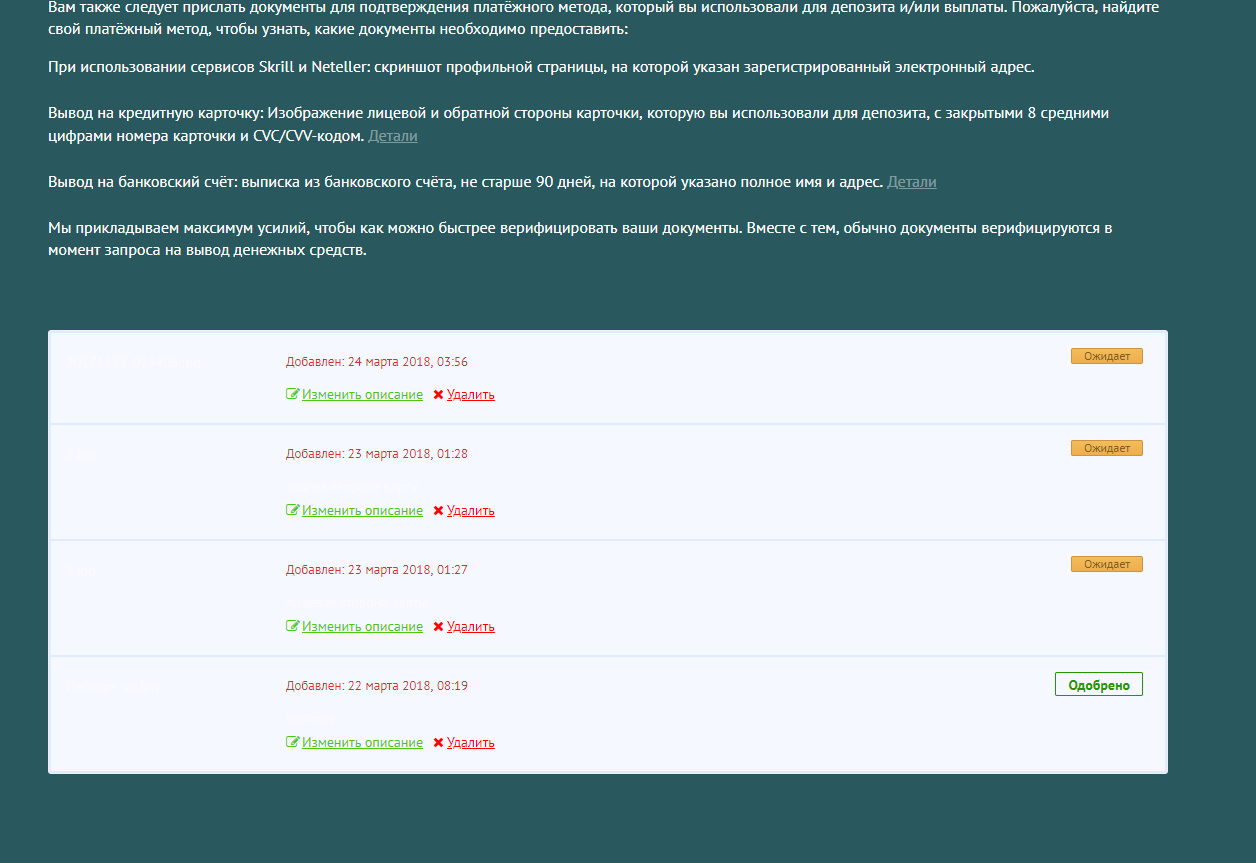 да все уже поняли что из себя представляет ваше "казино"чаще всего документы верифицируют при запросе на выплату.