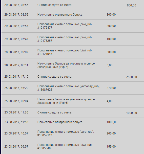 P.S ты скрины скинул выводов верно с этого казино?так ты кассу то всю покажи ввод -вывод. Ты в плюсе у них ?