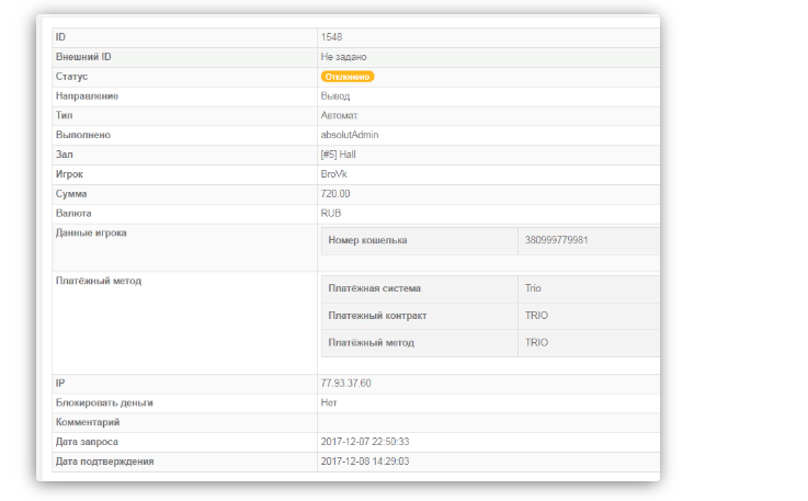 Я отыграл бонус поставил на вывод,одним платежом не ставило 900 руб,поставил два 1 поставил на 720 а второй поставил на 180,180 они то оплатили 720 не оплатили.Типа они провели его вручную ну не чего не пришло.