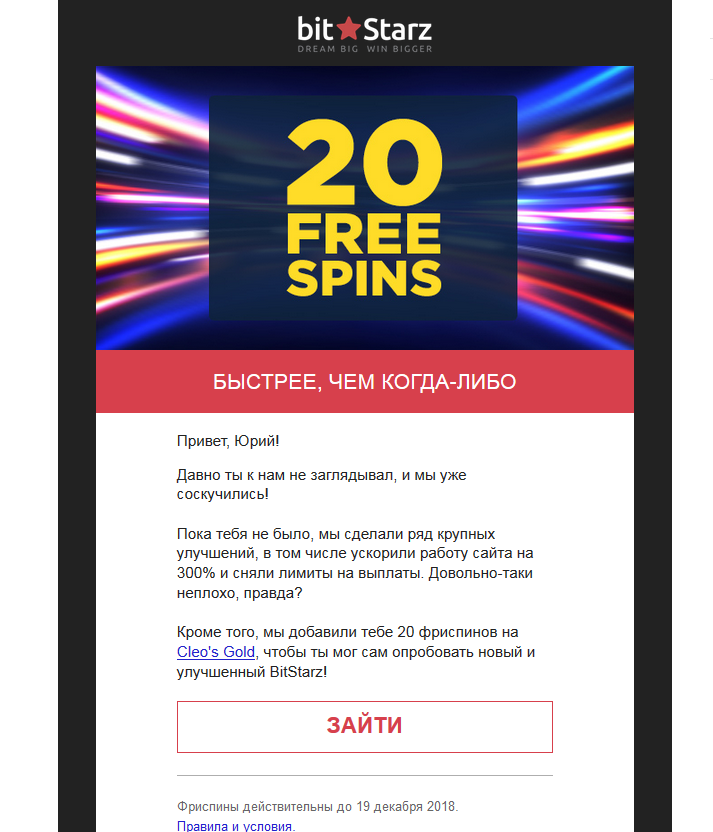 В 2018 году BitStarz оставило позади себя не одного конкурента: более 1800 игр, непревзойденная служба поддержки клиентов, молниеносный вывод денег и такие бонусы, что пальчики оближешь, – казино просто в ударе.
