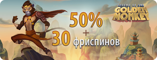 а также, 30 фриспинов в слоте Legend of the Golden Monkey.