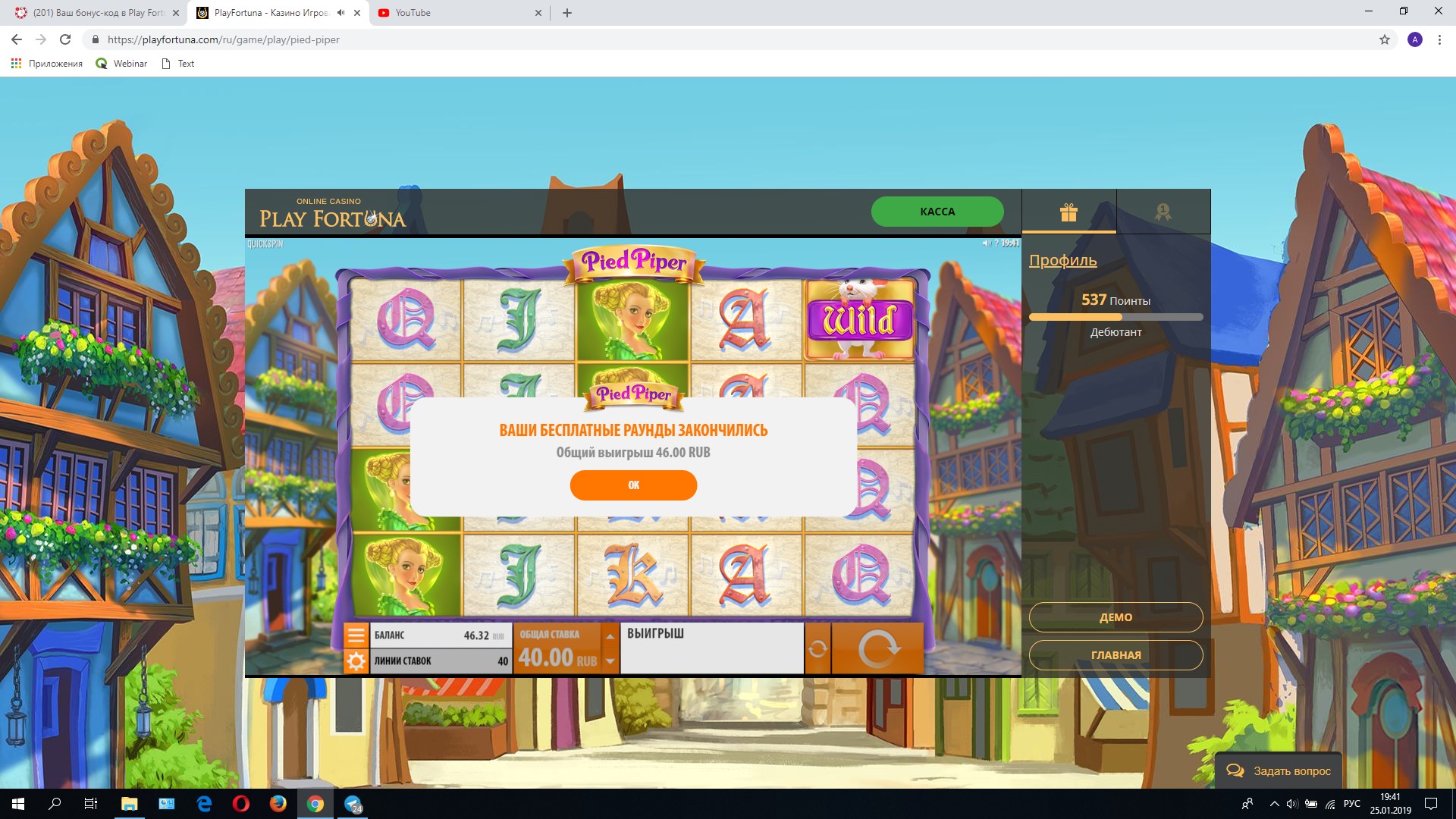 А мне в день рождения 25.01.2019 даже нечего не дали((( Хоть и был не один депозит! Фортуна разочаровала.