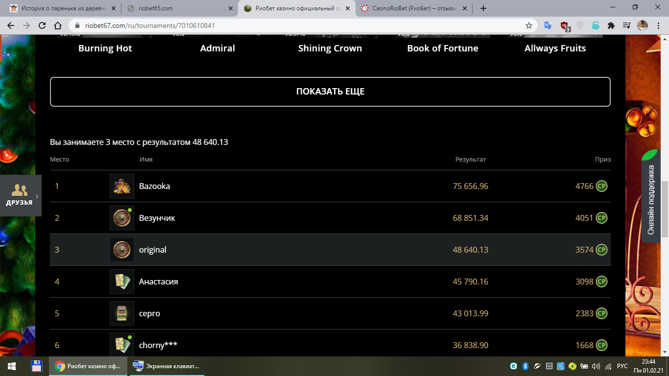 🙈 В турнирный результат зачтётся наибольший множитель (отношение выигрыша к ставке), полученный за время проведения турнира.