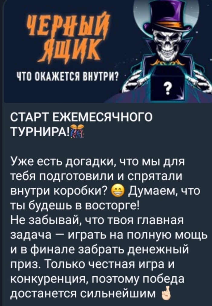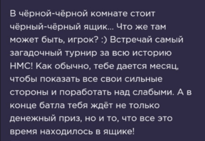Привет🙋!Несколько слов о НМС😀!Бездепплошадка,проходят турниры с реальными призами💯!До конца турнира две недели,все шансы узнать что в черном ящике✌🎃🥳!