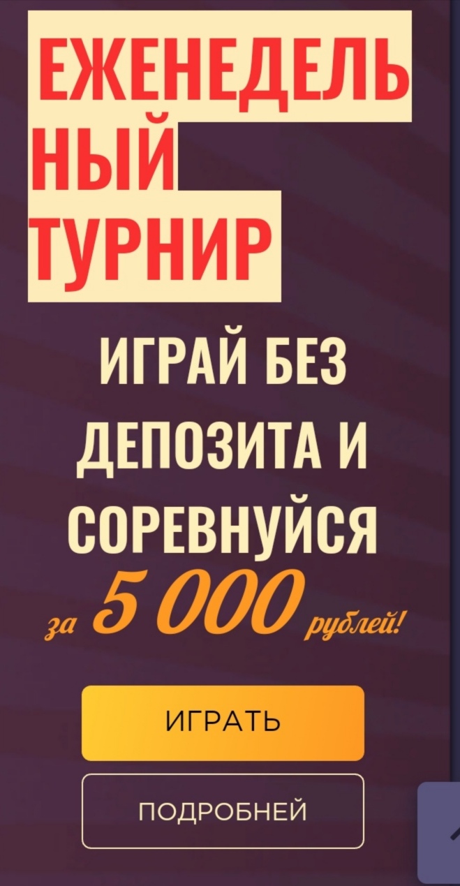 Привет и хорошего настроения🙋!Хорошая возможность попробовать взять приз😁!На НМС стартанул еженедельный турнир🥳!