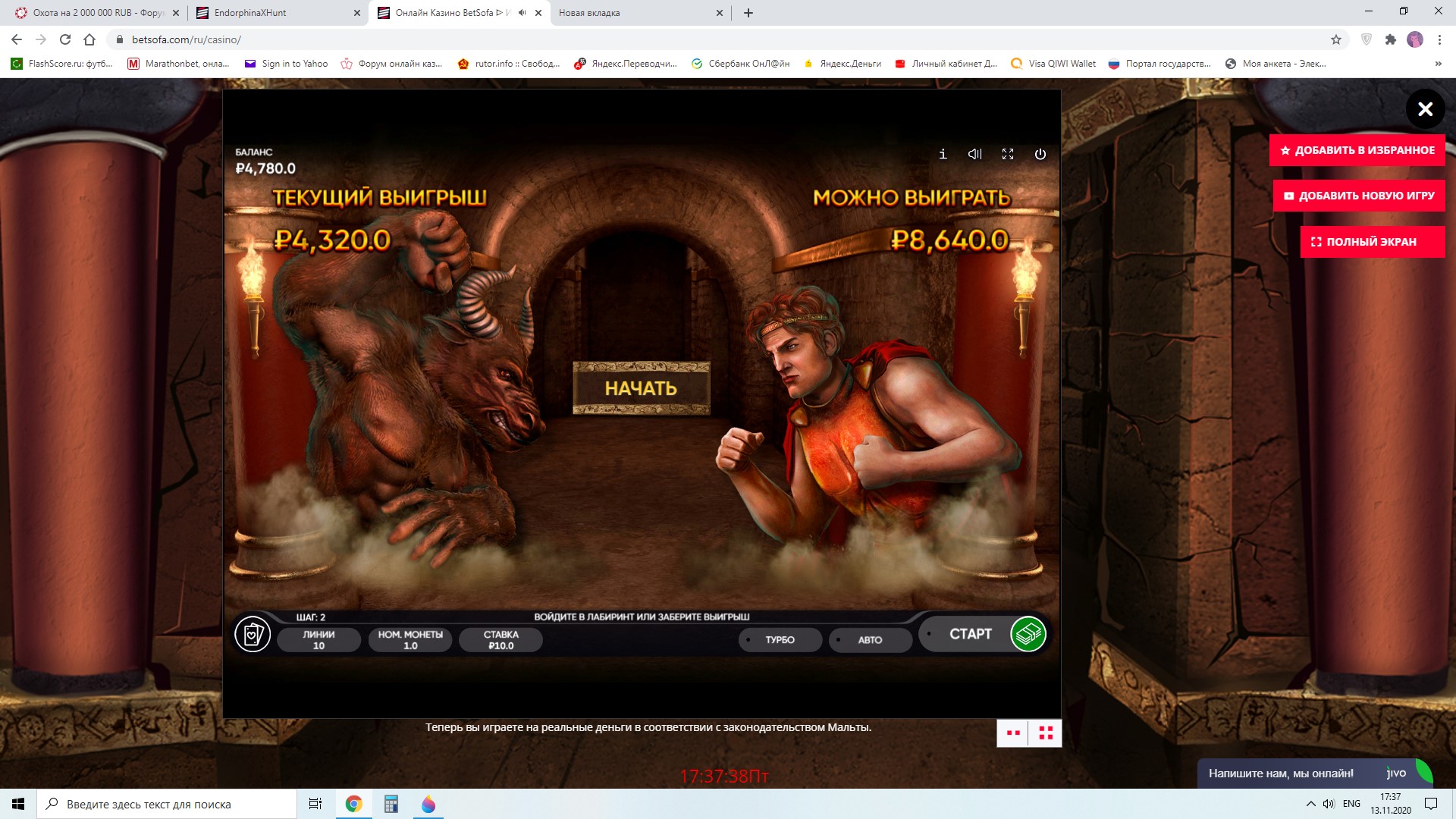 Мин ставка 20 рублей же написано)нормуль, я уже поймал иксовку на 50к ))) написал в чат , пока тишина