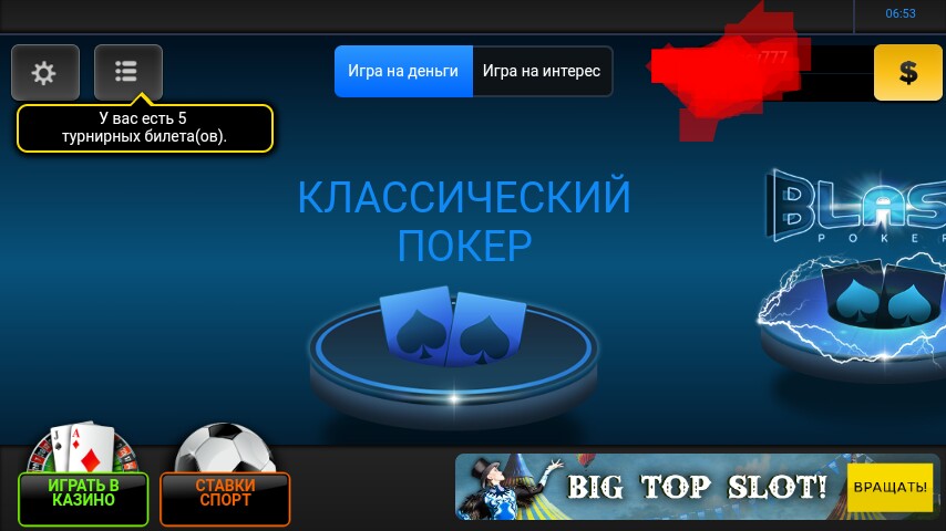Парни не знаю в курсе вы или нет,но 888 покер при входе в эти дни даёт бесплатно крутить барабан "BIG TOP SLOT!" до каких чисел будет это акция я не в курсе. Я уже третий день захожу (чё то забыл инфу скинуть сорри) кручу его и насобирал 5 билетов на фриху 3000$ чаще выпадает именно этот приз, но они там разные можно кеш так же выиграть, фриплей в казино 5$, 10 центов вход в "бласт" турнир и есть вариант ничего не выиграть.
