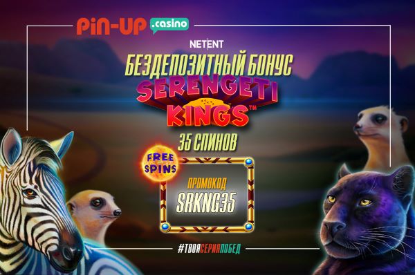 NetEnt презентовали новую игру Serengeti Kings. Постоянные игроки Pin-up могут попробовать ее за наш счет! Мы дарим вам бездепозитные фриспины: