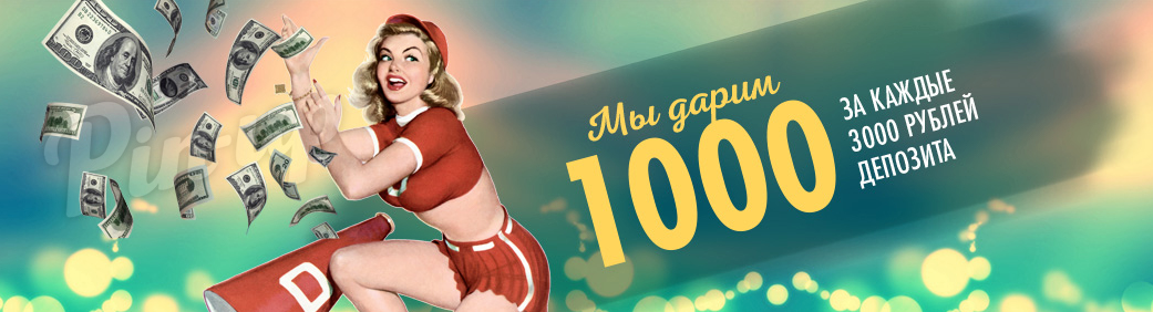 В период с 5 по 12 октября pin-up.casino запускает небывалую по щедрости акцию! Только в этот период за каждые 3000 рублей депозитов мы дарим еще 1000 на бонусный счет. Самое главное, что эта акция совместима со всеми остальными. То есть если это будет ваш первый депозит 3000 рублей, то вы не только получите +100% в качестве бонуса за первый депозит, но и еще 1000 сверху (3к+3к+1к = 7к)! Кроме того, заветные 3 тысячи можно пополнять и частями. Главное, чтобы вы успели набрать нужную сумму депозитов за время проведения акции, и бонус ваш!