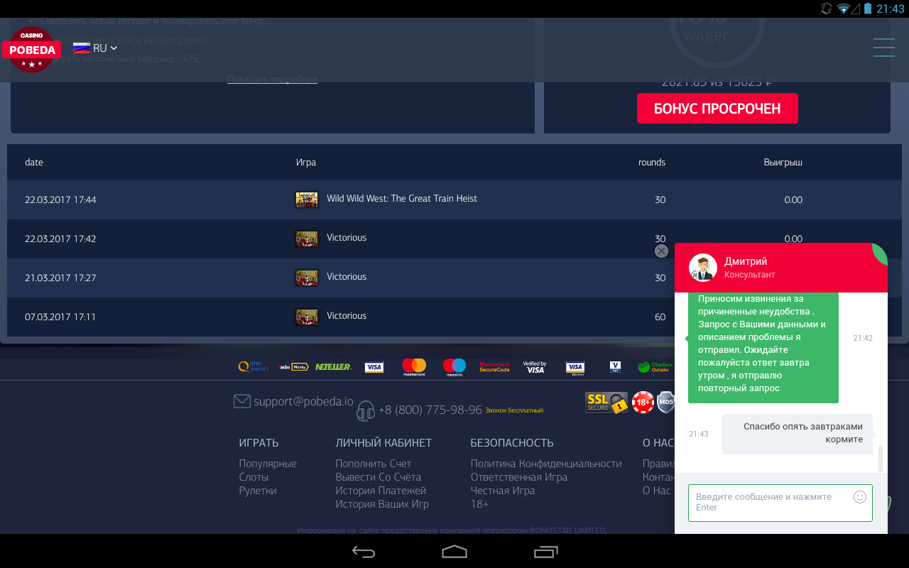 Подозрительно Pobeda (казино Победа) - бонусы казино, обзор и ваши отзывы