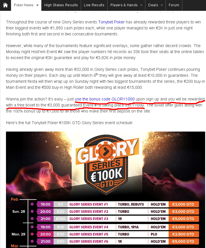 Пришло письмо от Тонибет. У них шли тогда какие-то крупные турниры. Обещали просто за регистрацию билет на турнир с гарантией 3000 евро.
