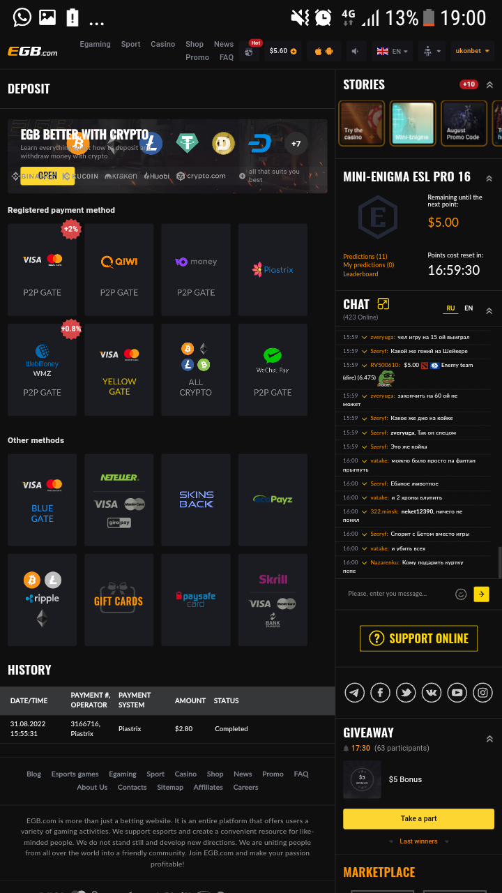 У нас осталось 4 подарочные карты по 5$, их получат те, кто первый сделает любой депозит с сегодняшнего дня!Участник тоже