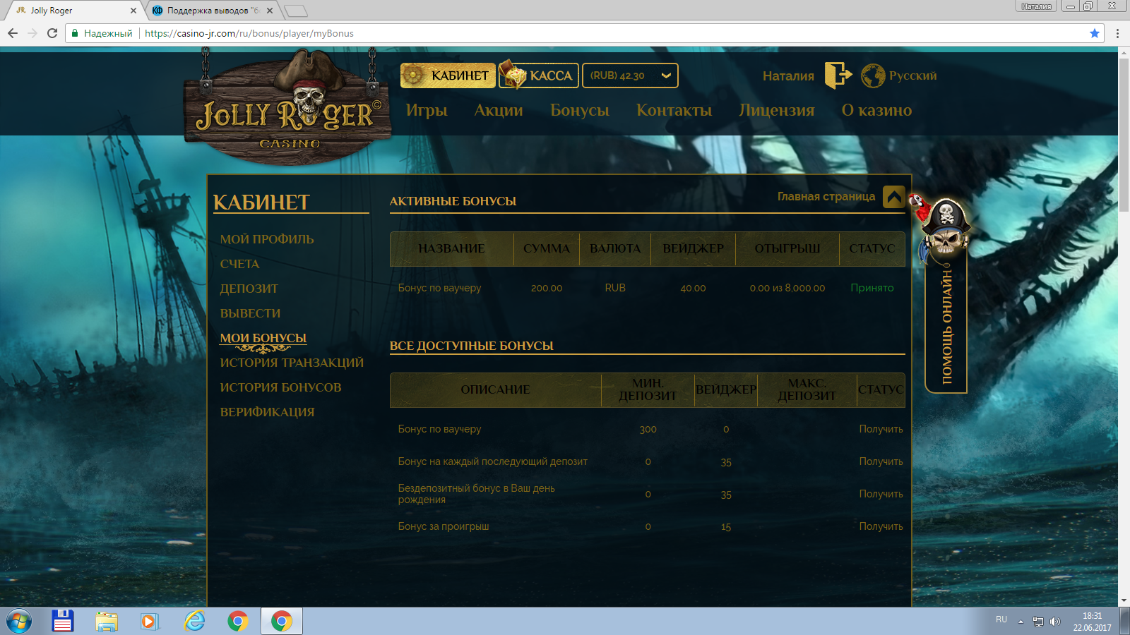 @Jolly Roger Casino жду пополнения счета в казино, бонусы на выводе.