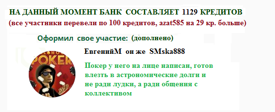 БАНК 1700 кредитов (ЗАДИАК КИНУЛ ЕЩЕ 37 кр и я добавил до ровного счета 19 кр)
