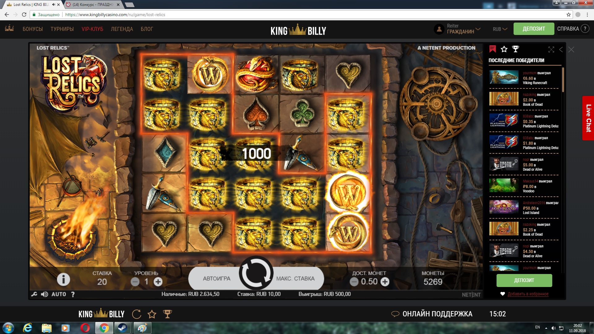 2000 рублей в казино Vodka bet