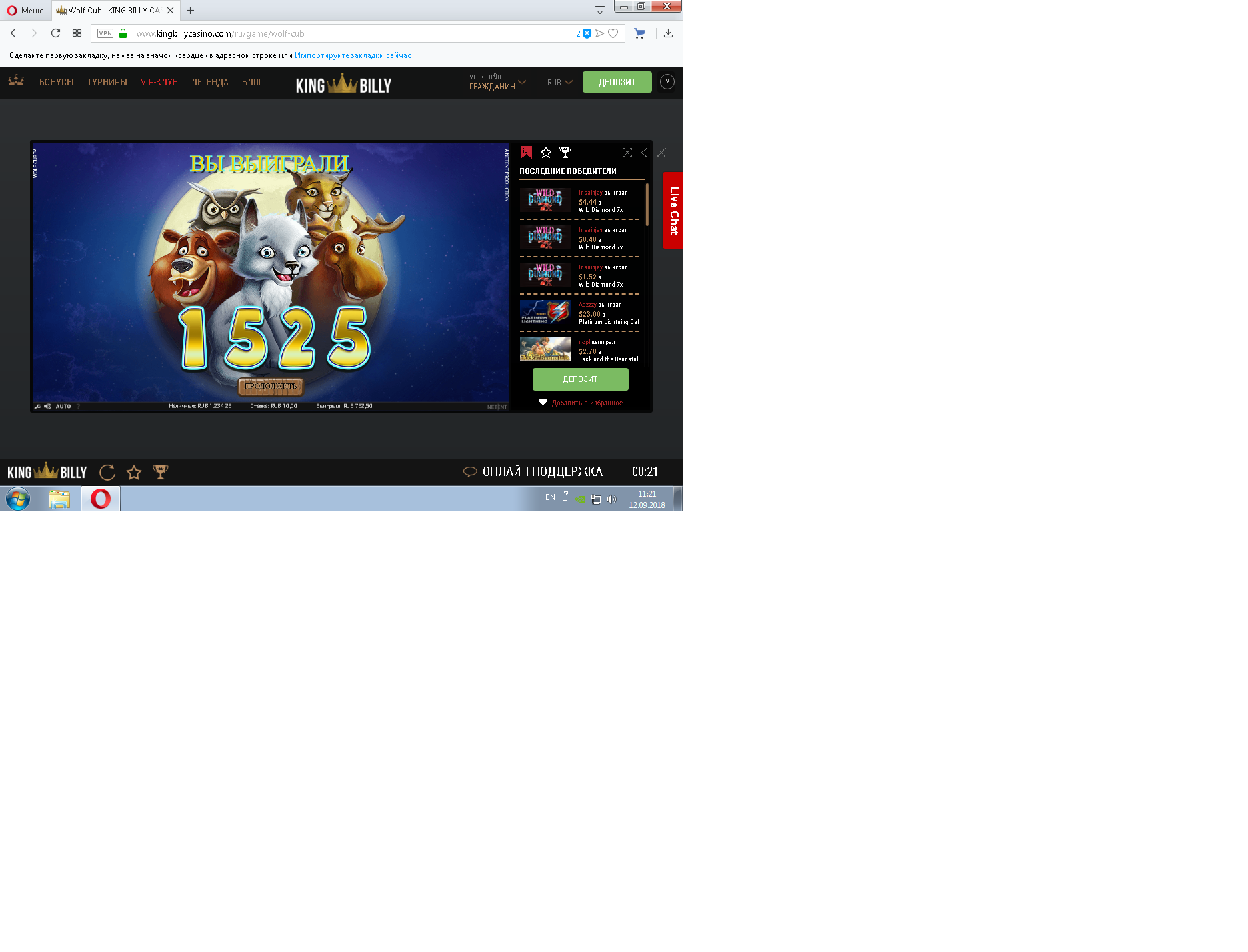 1000 рублей в казино Vodka bet