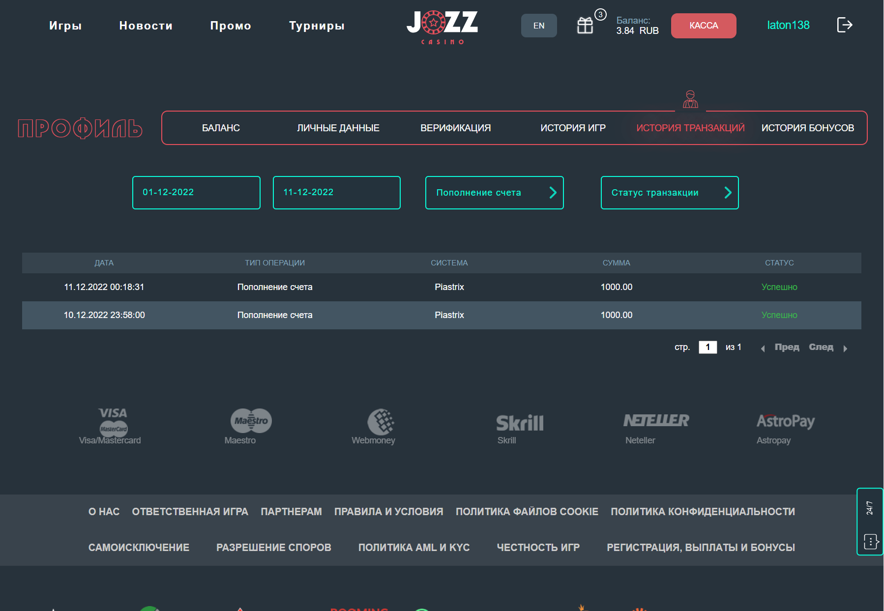 Может кто-то еще делал депозиты в этом месяце в КАЗИНО JOZZ и забыл об этом? )) давайте, ждем еще одного участника и раздаю промокоды... дополнительно каждый участник получит по 1 билету в Лотерея форума - тираж №4