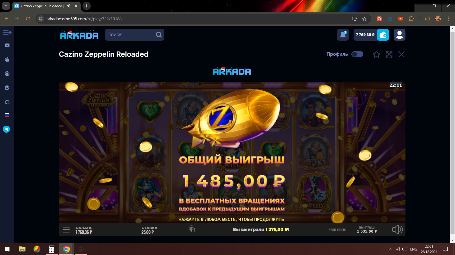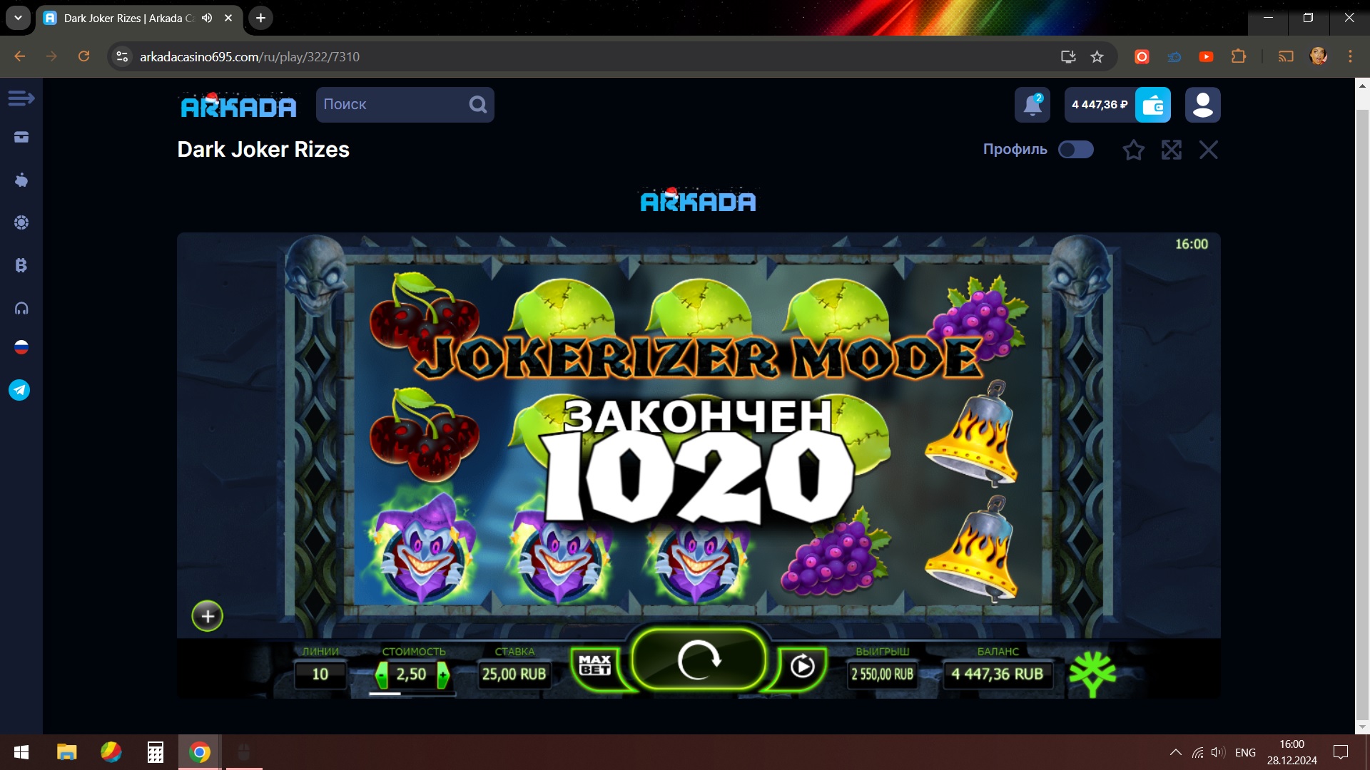 - Самое большое умножение в казино Arkada поймал @Спортсмен - х1332,5