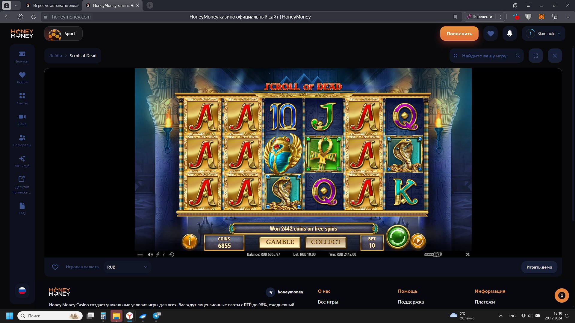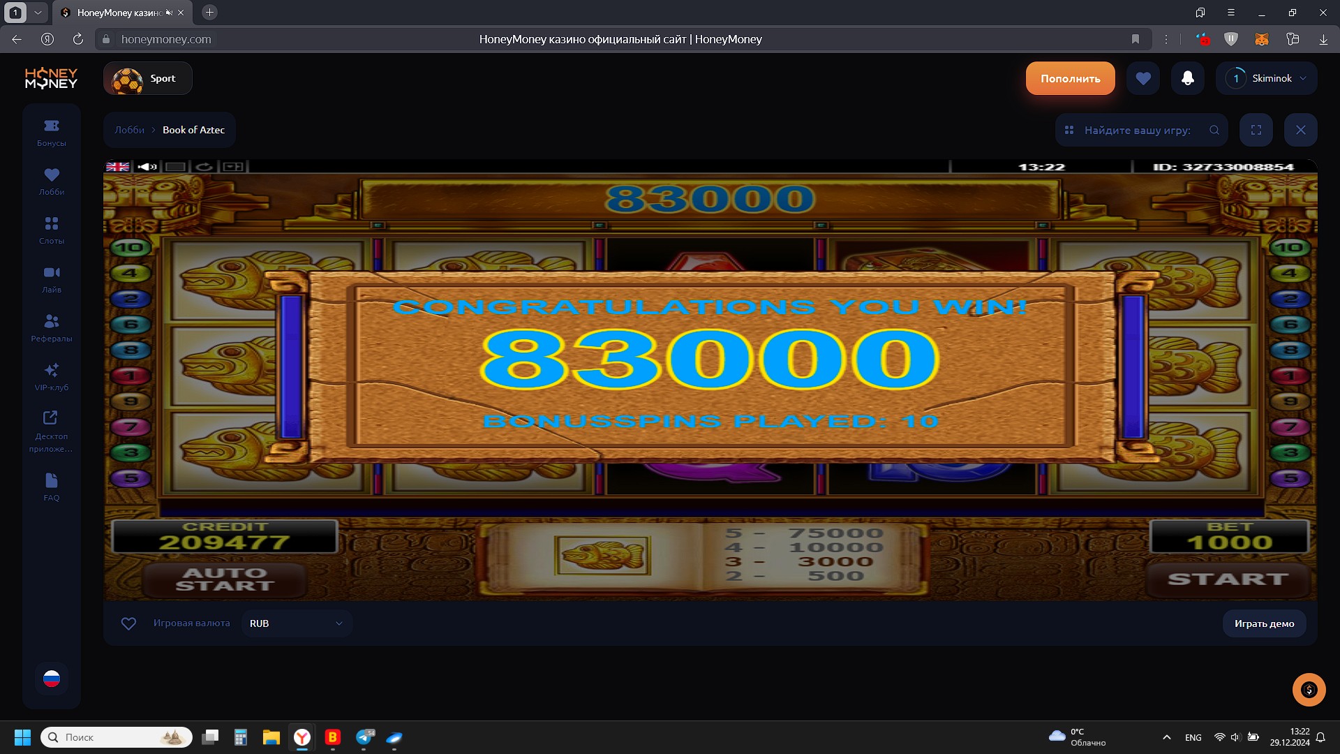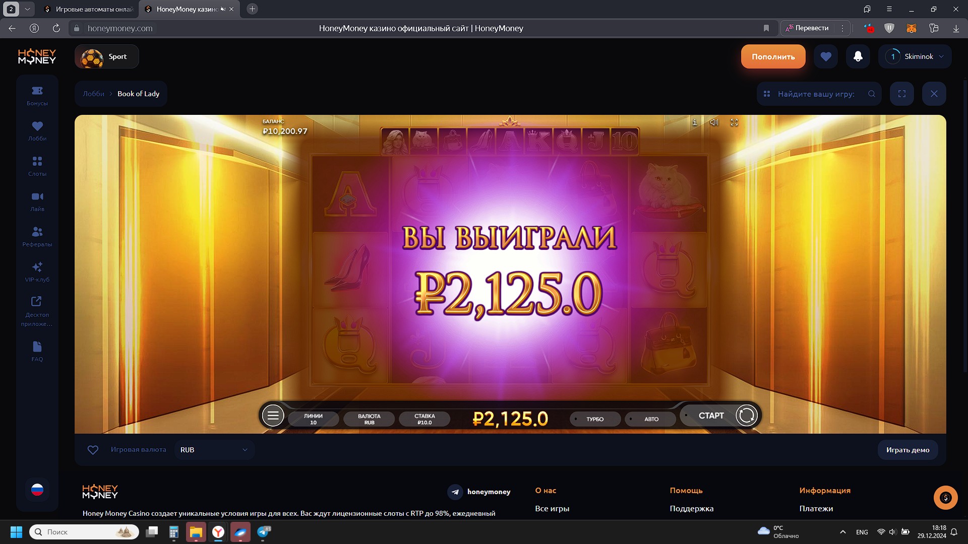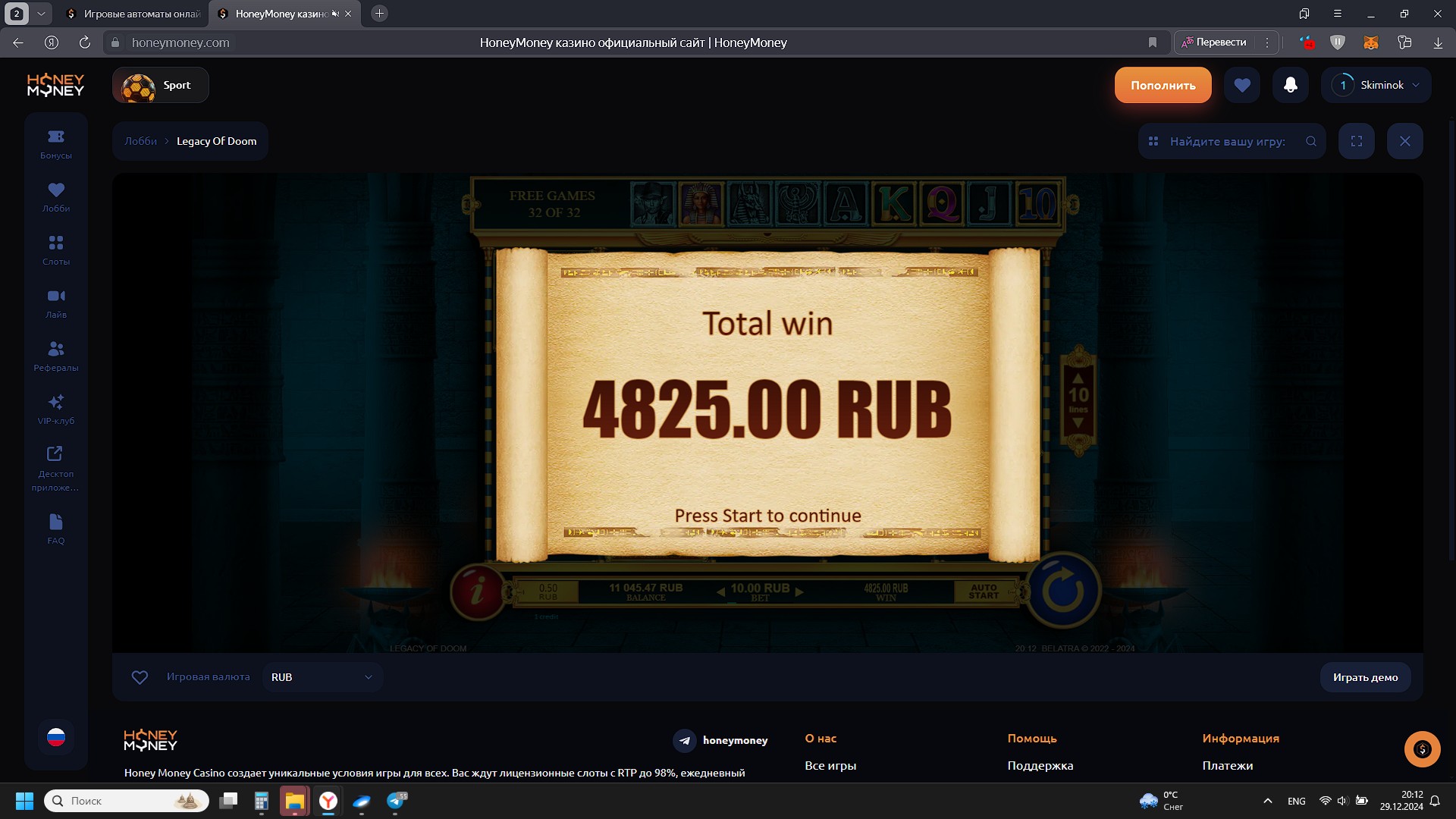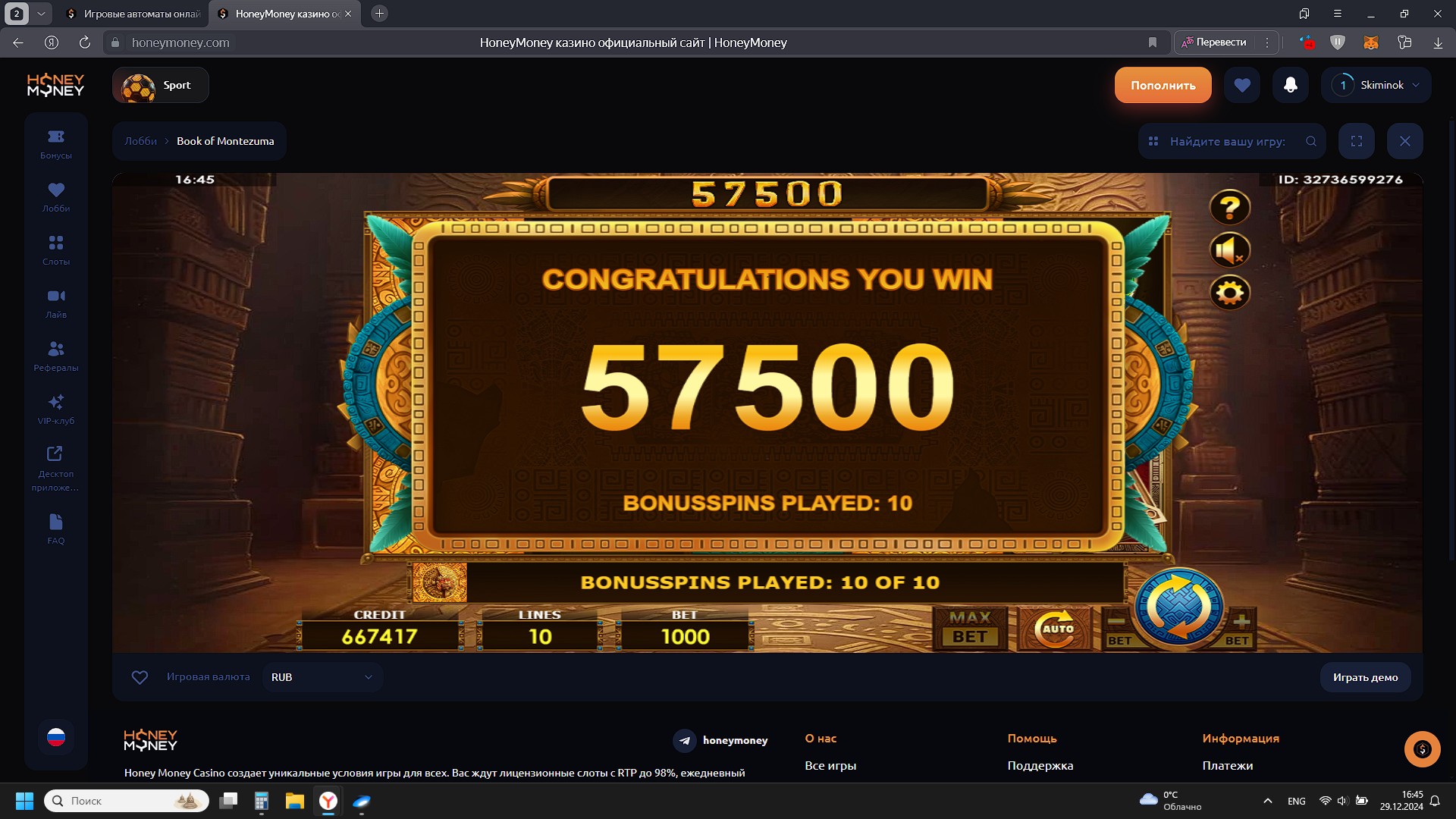 - Больше всего скринов из Казино Honey Money у @Спортсмен - 107 скринов