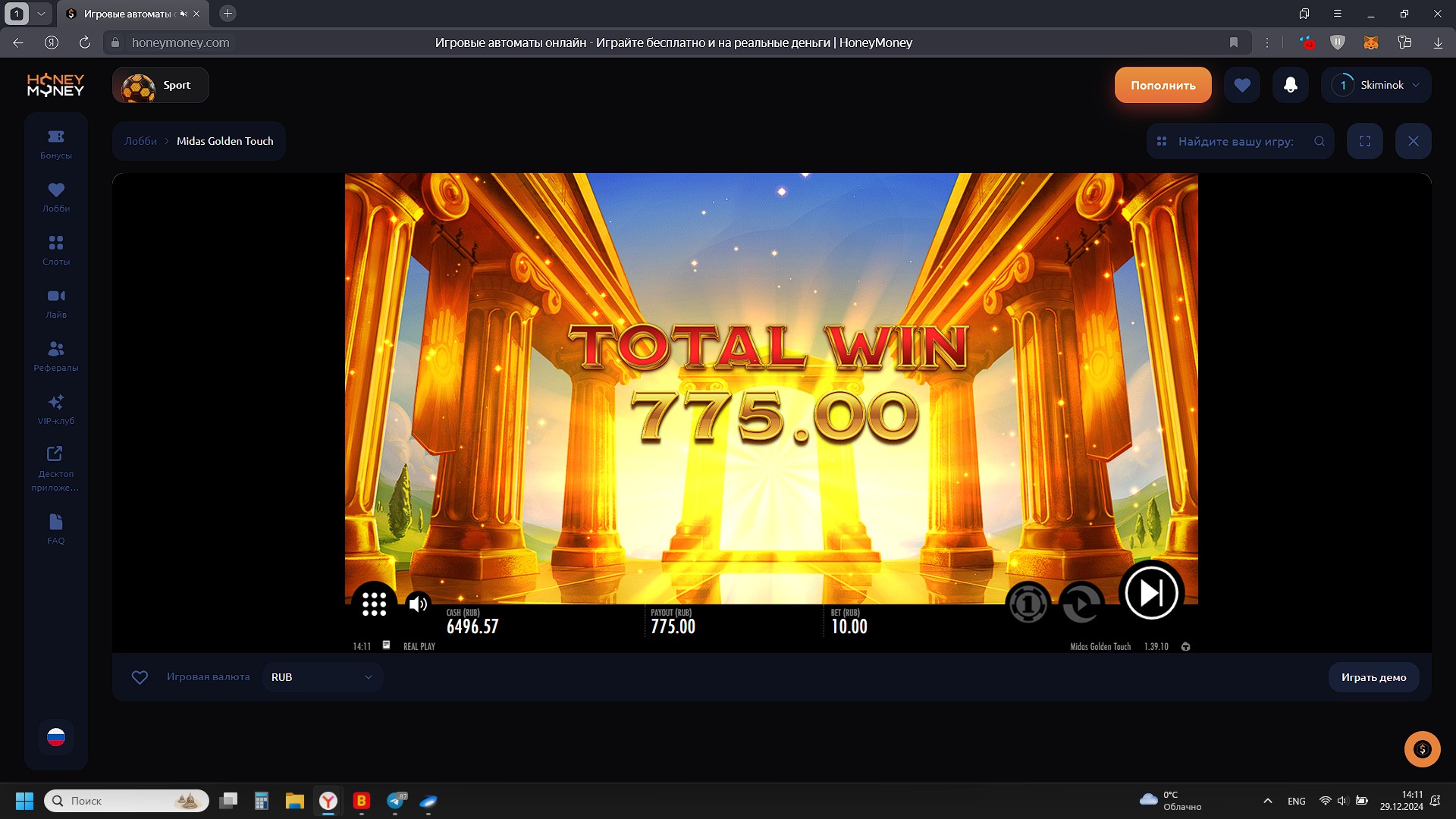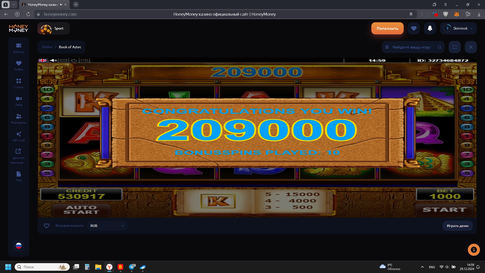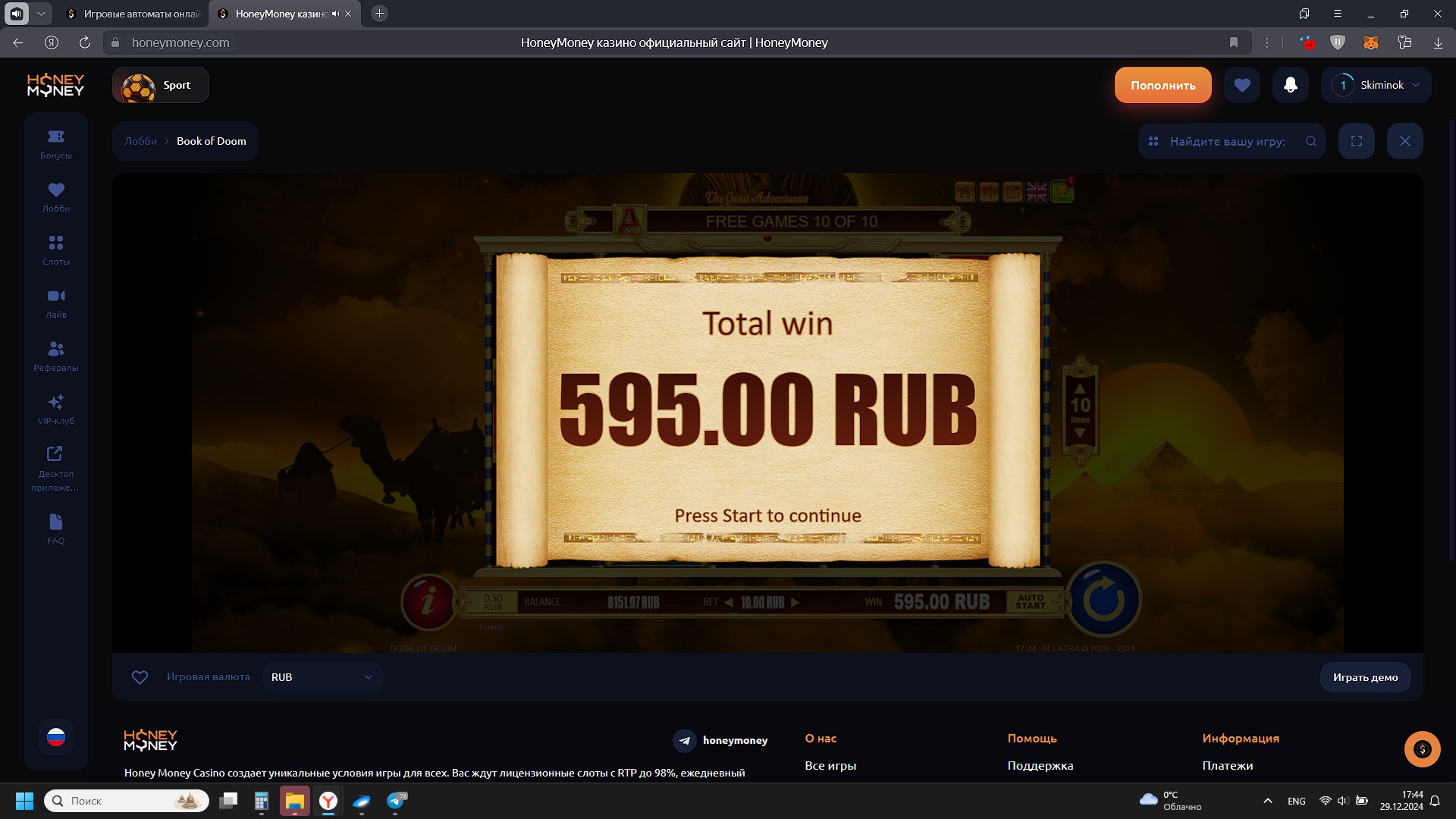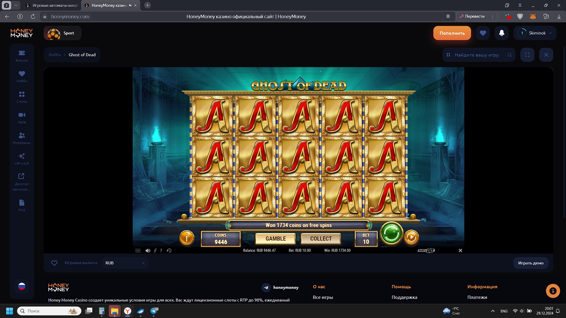 - Больше всего скринов из Казино Honey Money у @Спортсмен - 107 скринов