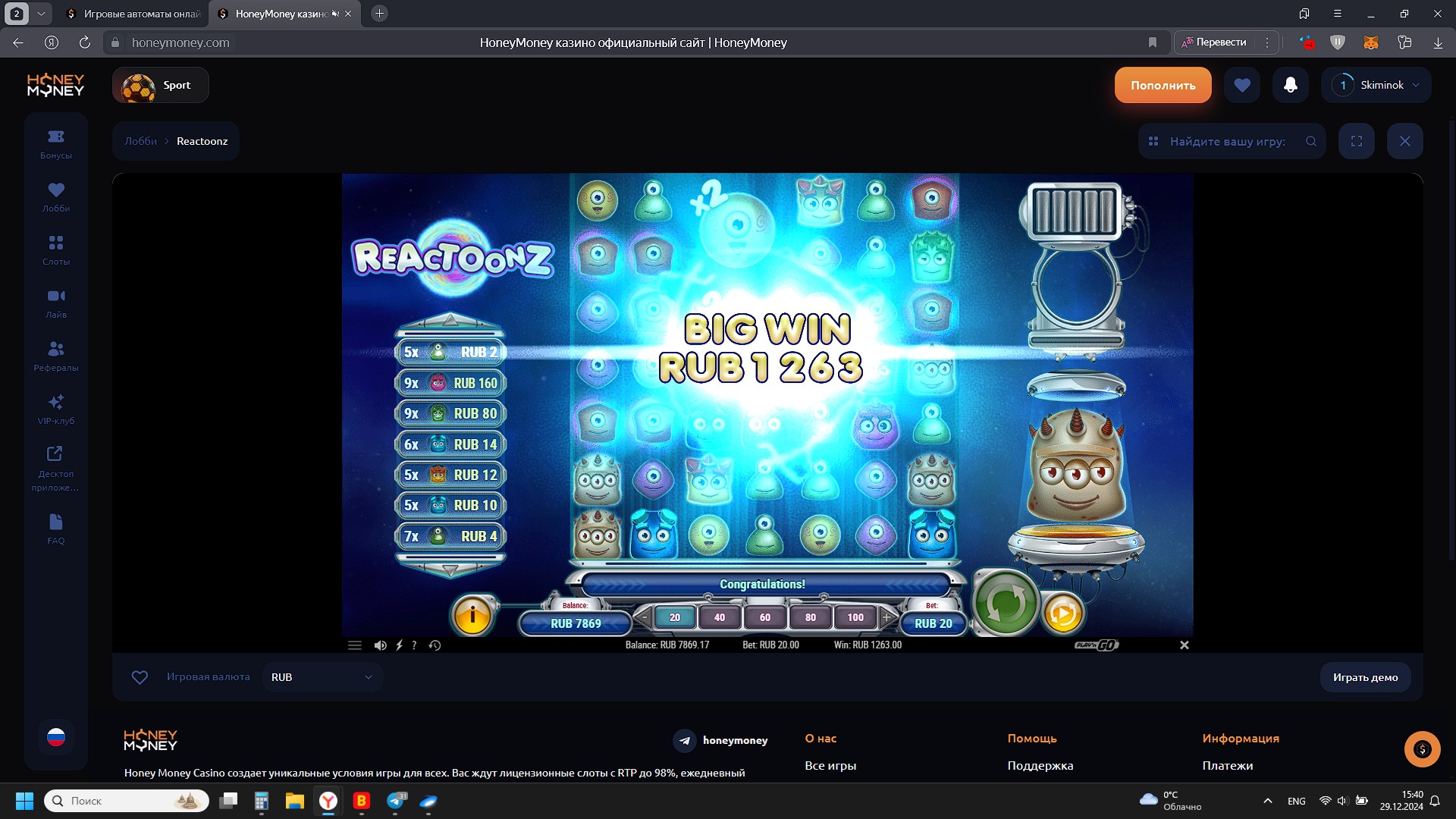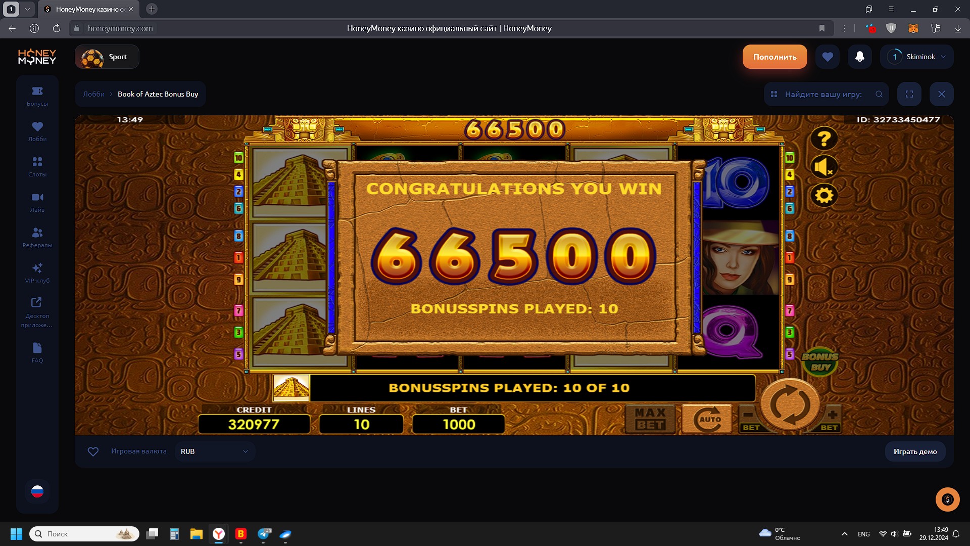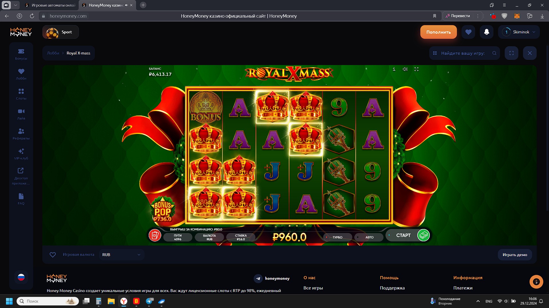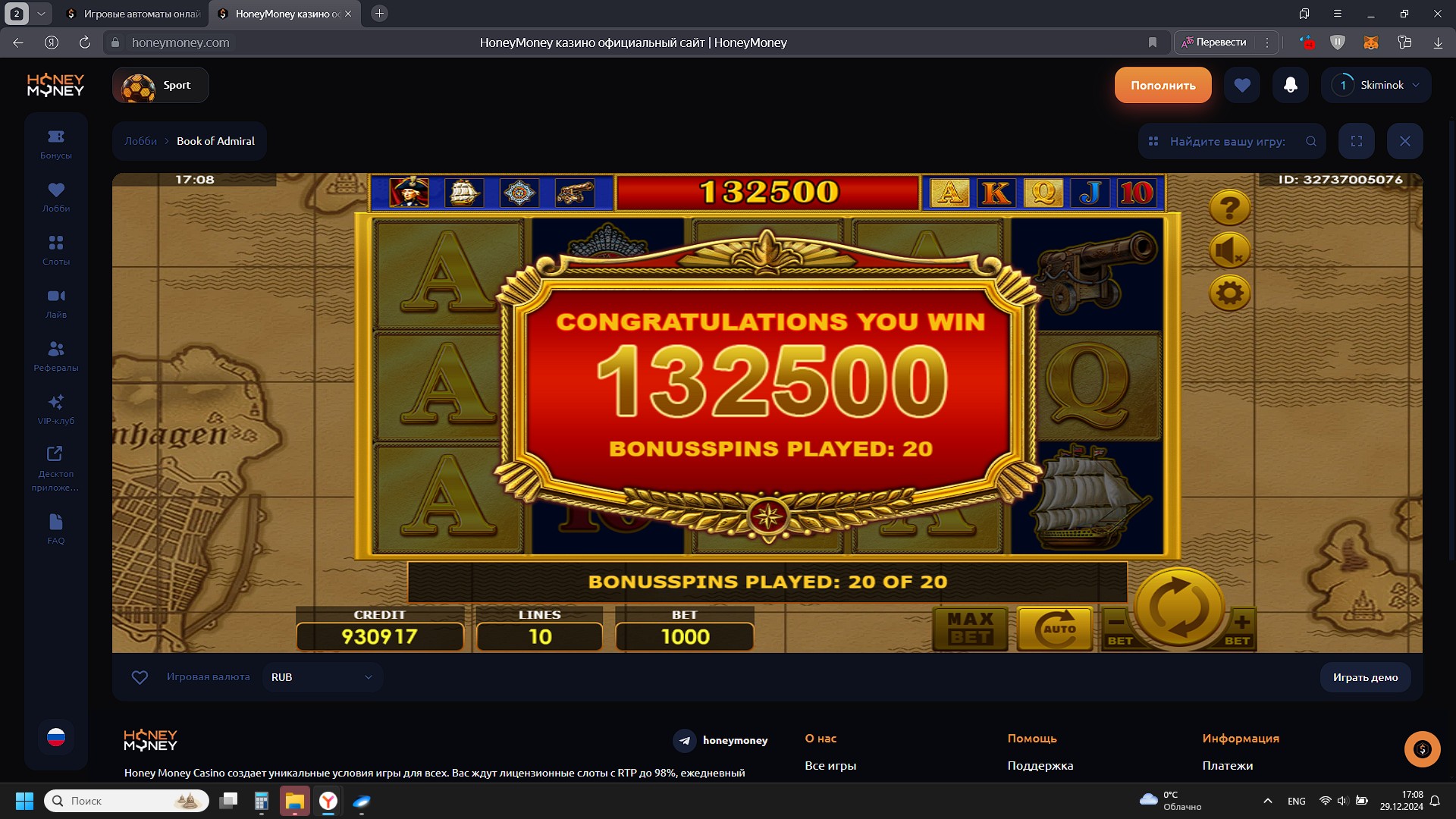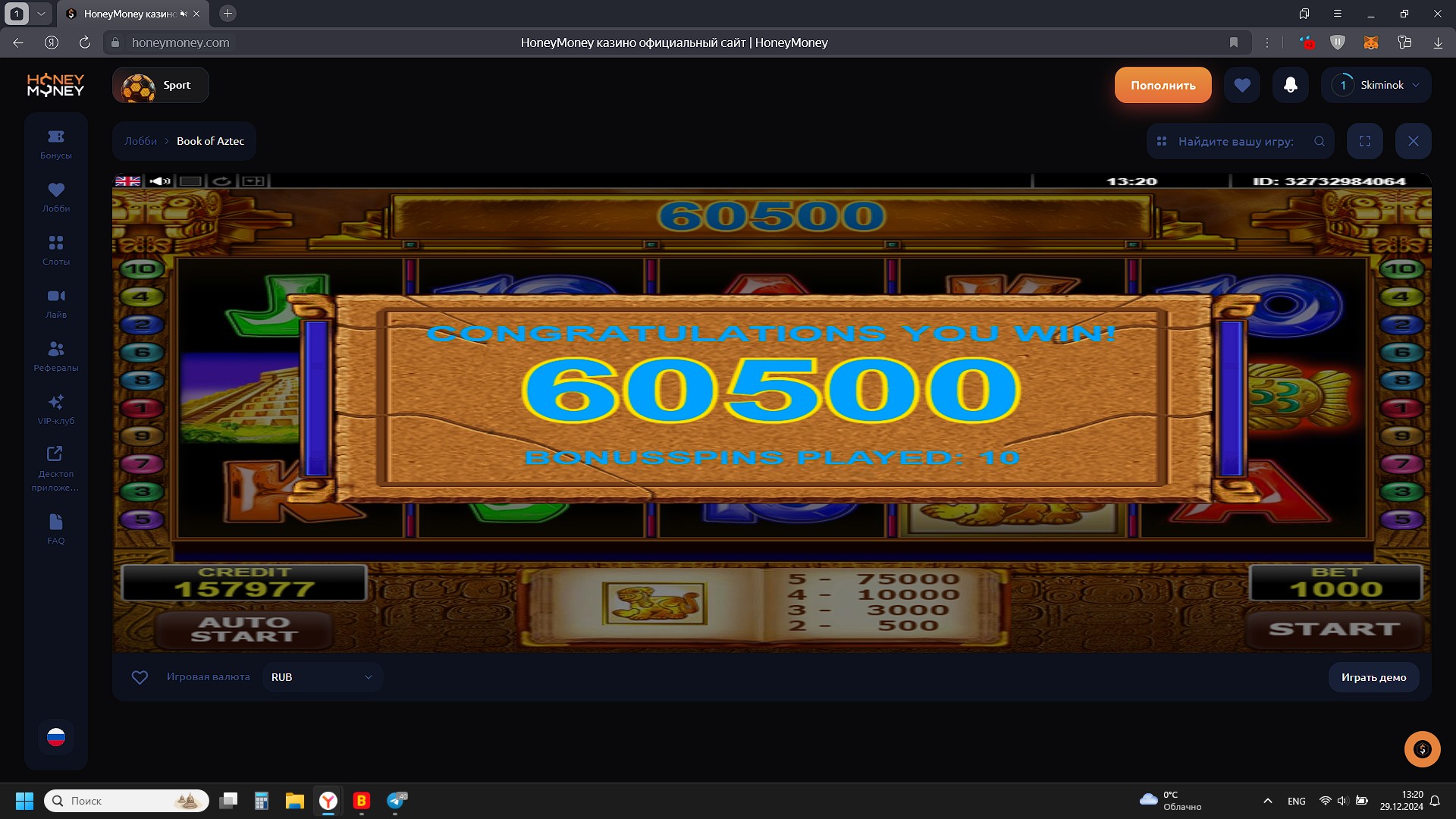 - Больше всего скринов из Казино Honey Money у @Спортсмен - 107 скринов