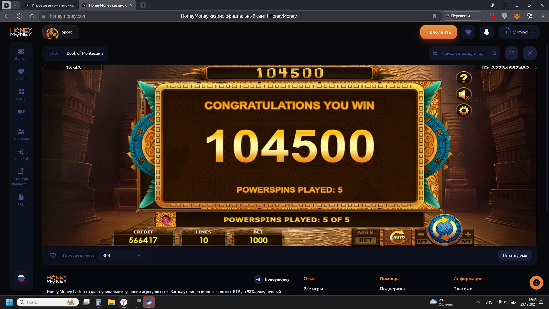 - Самое большое умножение в казино Honey Money поймал @anzhel162 - х1680