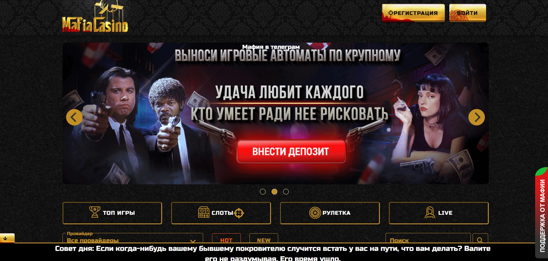Портал стремительно набирает популярность, отличаясь от других аналогичных сайтов авто выводами, наличием анонимной регистрации и индивидуальным подходом к каждому игроку Казино Mafia официальный сайт.
