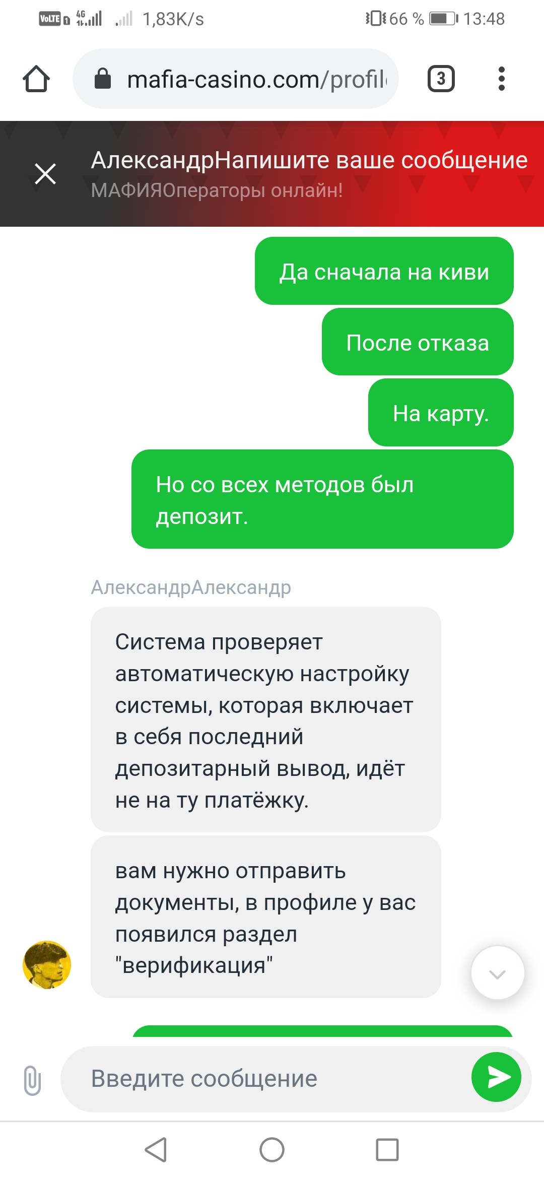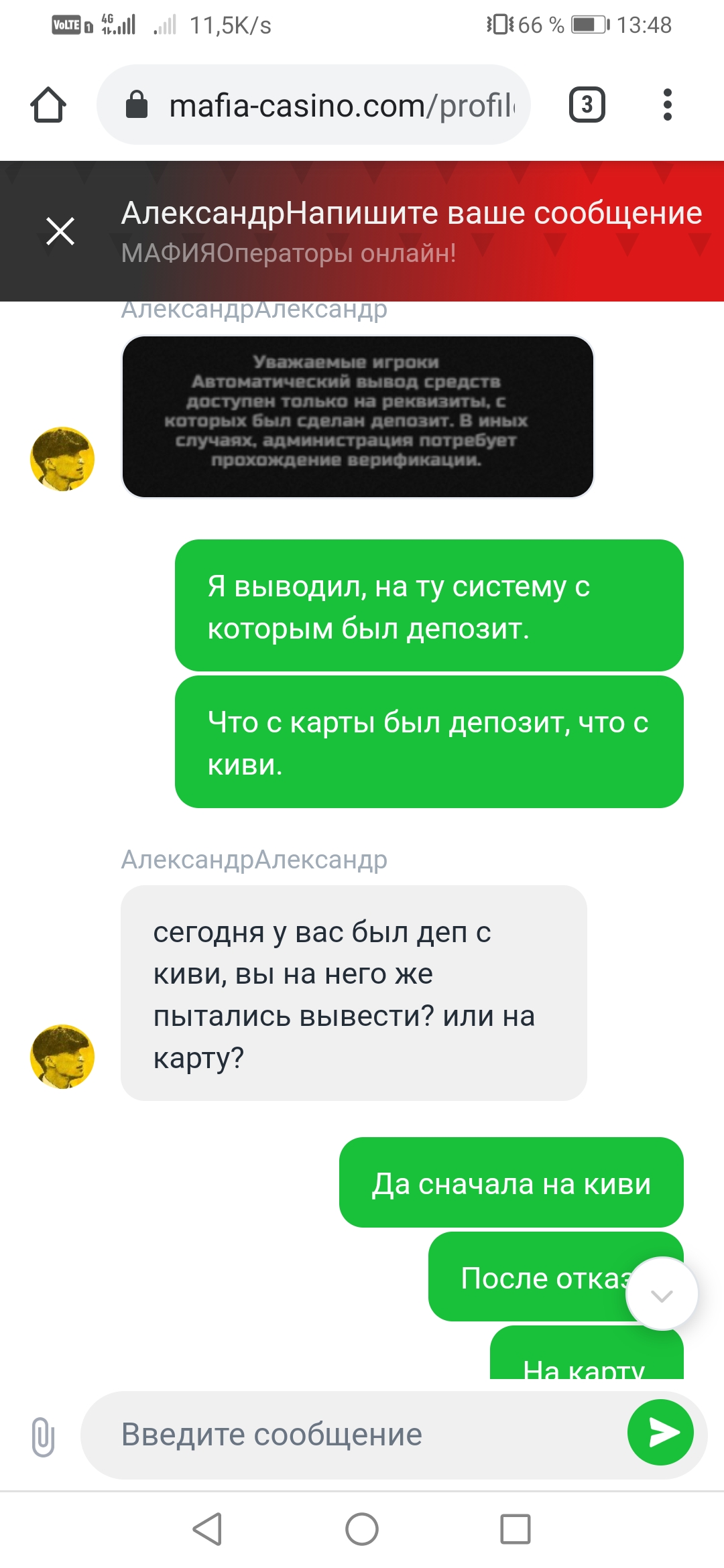Да жалко 13к. Я говорю если бы сразу не скрыто было с верификацией, да и то, в нормальном заведении, где-то до 50к где-то до 75к где то до 20к, вывод без верификации. В 1хслот, у меня вообще верификация не пройдена, выведено в общем 700к, максимально единоразово выводил 250к, никогда проблем не было, причем там не автовывод но 250к вывели за 7 минут. И к слову, я даже букву не назову, когда они меня попросять пройти эту грёбаную верификацию. А тут мне даже интересно, как будет оправдываться представитель. Деньги они мне конечно не вернут, но очень интересны их действия, если он вообще сюда зайдет)