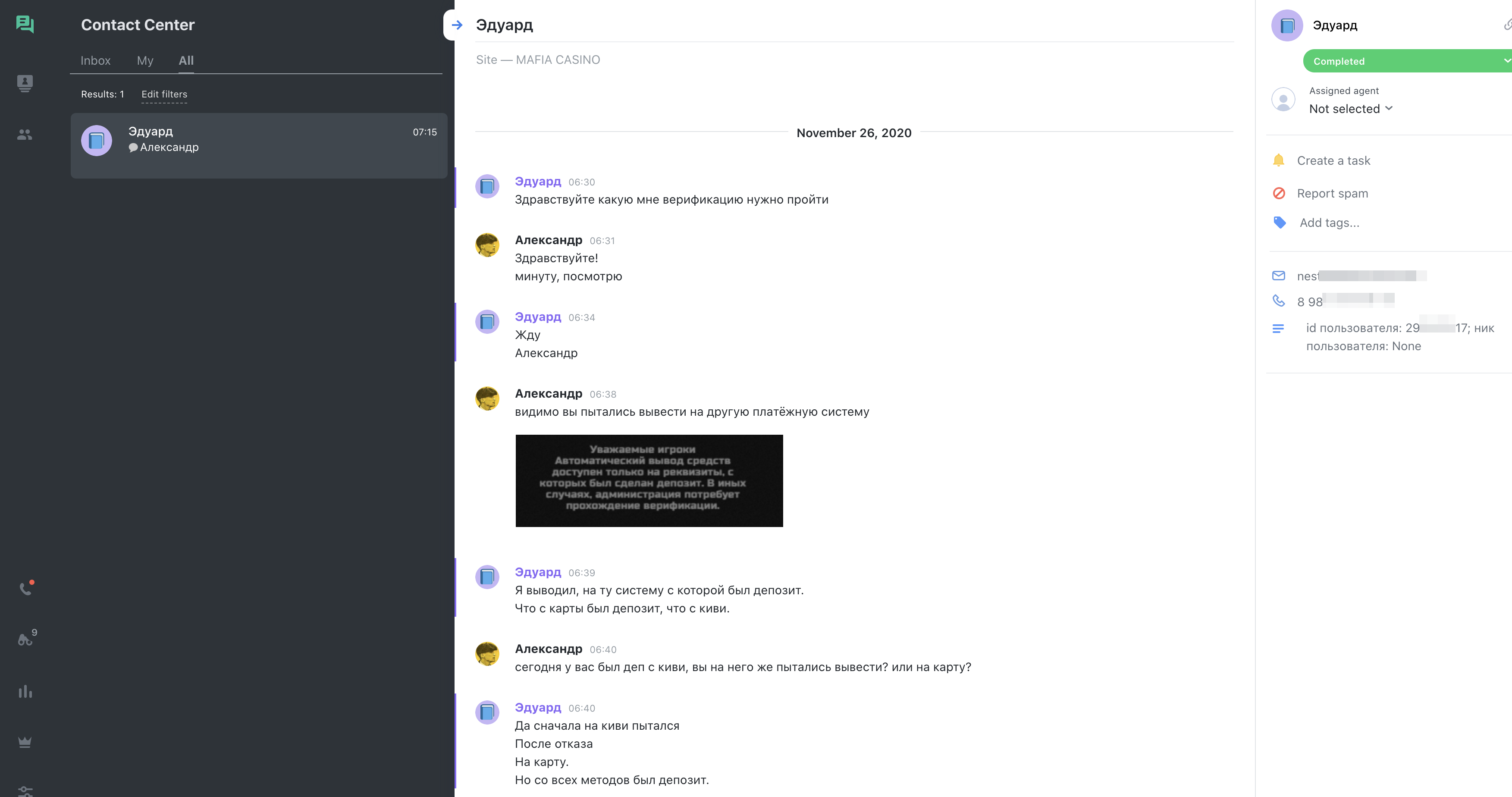 4. Предоставленные скрины из истории Jivosite (стороннего сервиса). Редактированию они не подлежат, да и хранятся на сторонних сервисах. В любом диалоге схораняется предыдущая переписка. Оператор не может её удалять, поскольку она нужна для других операторов что бы понимать о чём шёл диалог ранее. Ещё раз аттачу полную переписку. И есть ваши скрины. Они отличаются. Вот и всё. Проблем в этом никаких нет.