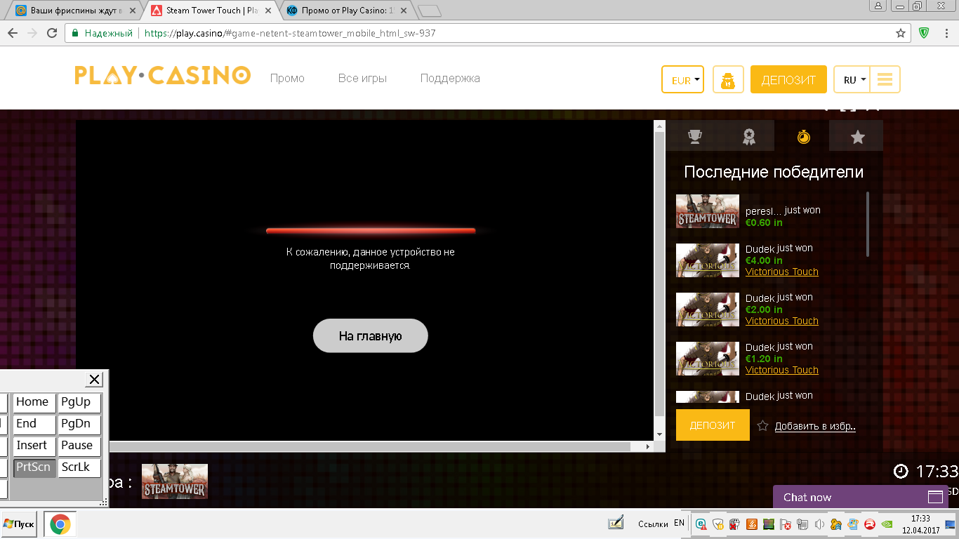 3) Зайти в игру "Steam Tower" и отыграть их. Полученный выигрыш зачислится вам на баланс в качестве бонуса с вейджером = 1х!