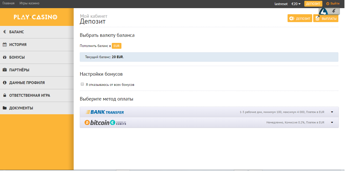 Там без депозита тока 20, можно сделать поэтому стала играть чтоб 20 вывести...