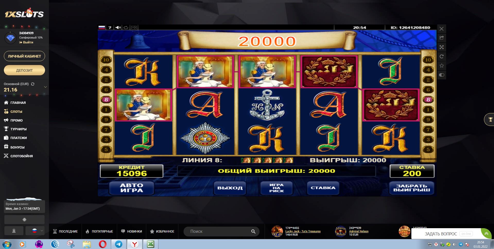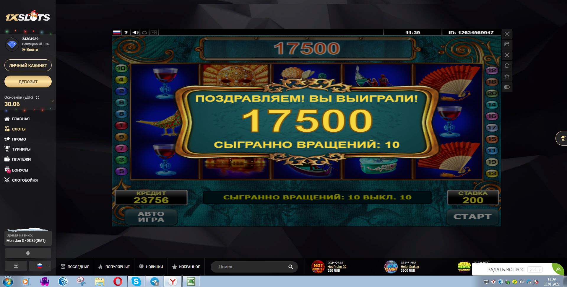 Мои поздравления с заносом!) Удачно год начинается!!)Сегодня немного подфартило в КАЗИНО 1XSLOTS