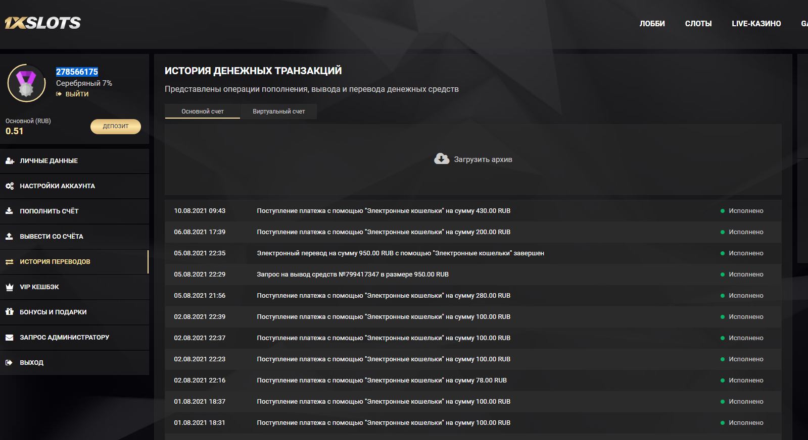 Условия участия - наличие суммы депозитов в КАЗИНО 1XSLOTS в текущем месяце (т.е. в августе) от 10 евро\900 рублей\350 гривен, выкладываем скрин депозитов и номер счета!