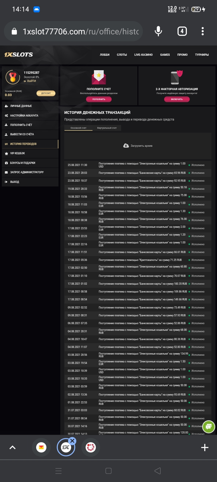 Условия участия - наличие суммы депозитов в КАЗИНО 1XSLOTS в текущем месяце (т.е. в августе) от 20 евро\1800 рублей\700 гривен, выкладываем скрин депозитов и номер счета!
