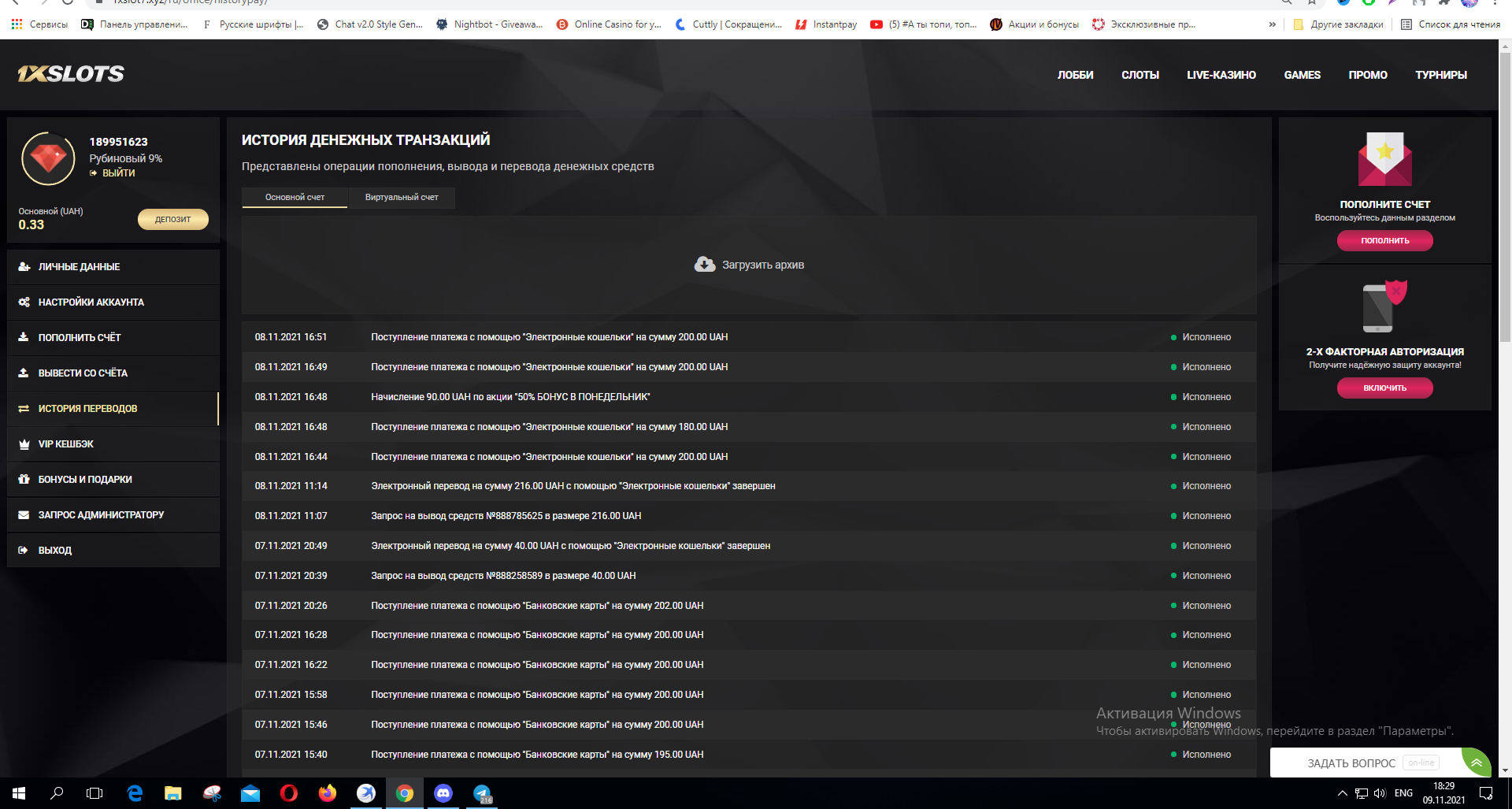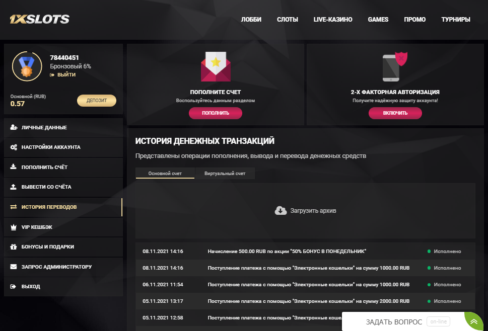 Условия участия - наличие суммы депозитов в КАЗИНО 1XSLOTS в текущем месяце (т.е. в ноябре) от 10 евро\900 рублей\350 гривен, выкладываем скрин депозитов и номер счета!