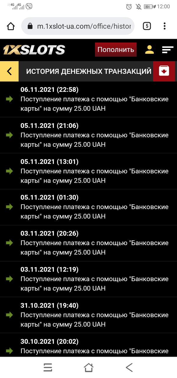 Условия участия - наличие суммы депозитов в КАЗИНО 1XSLOTS в текущем месяце (т.е. в ноябре) от 10 евро\900 рублей\350 гривен, выкладываем скрин депозитов и номер счета!