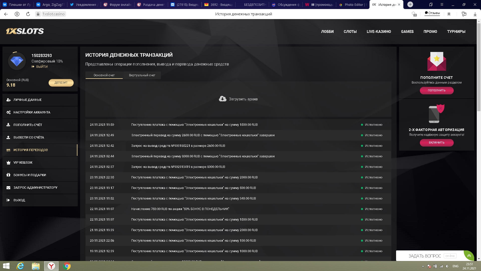 Выкладываем скрин депозита и номер счета, депозиты за сегодня будут участвовать в первом розыгрыше, который состоится завтра 25 ноября в течении дня. Депозиты сделанные завтра будут участвовать в розыгрыше который состоится 26 ноября и т.д.