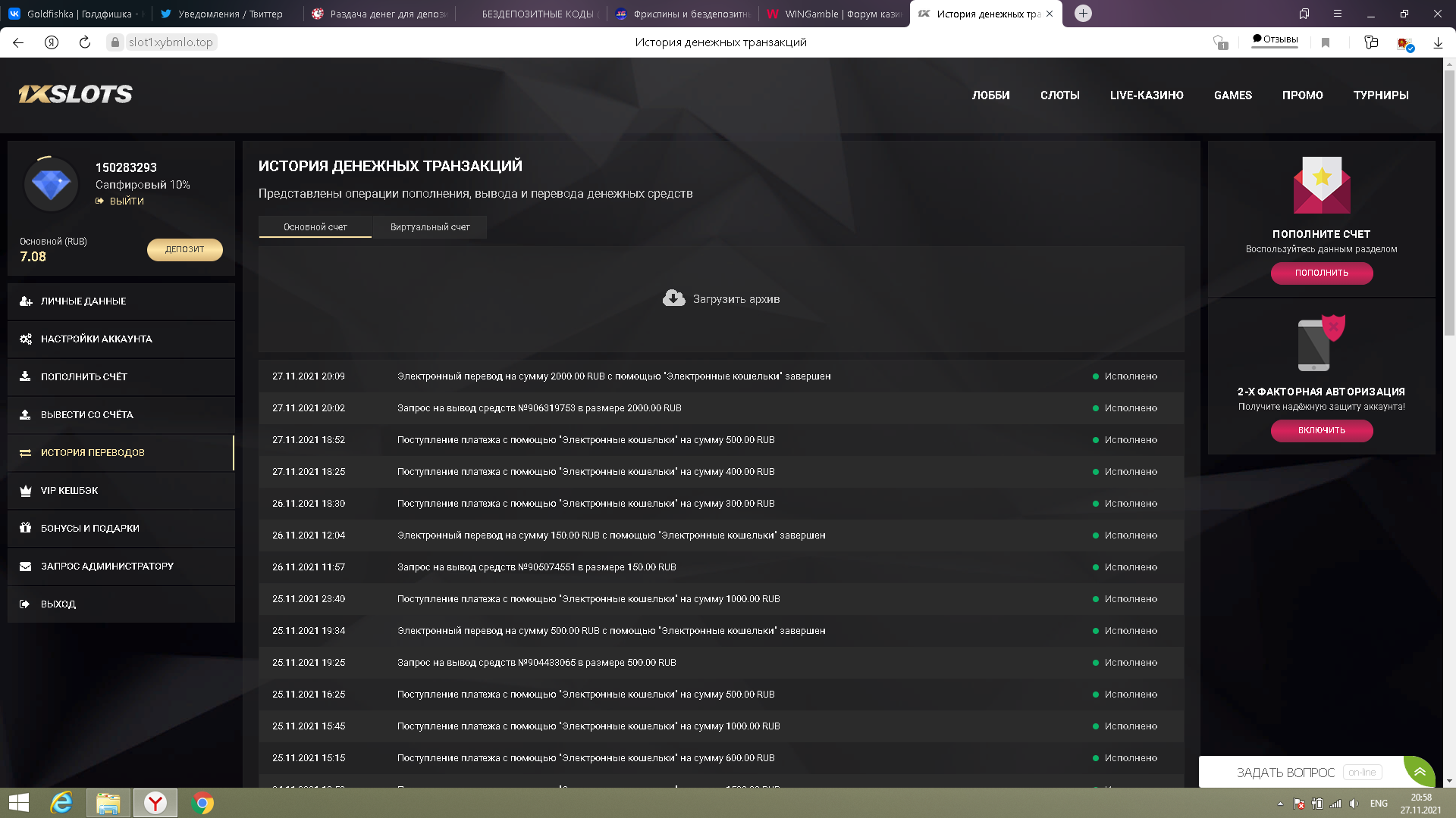 А тем временем новый день и новый розыгрыш - жду ваши скрины депозитов в казино 1XSLOTS за сегодня, 27 ноября!