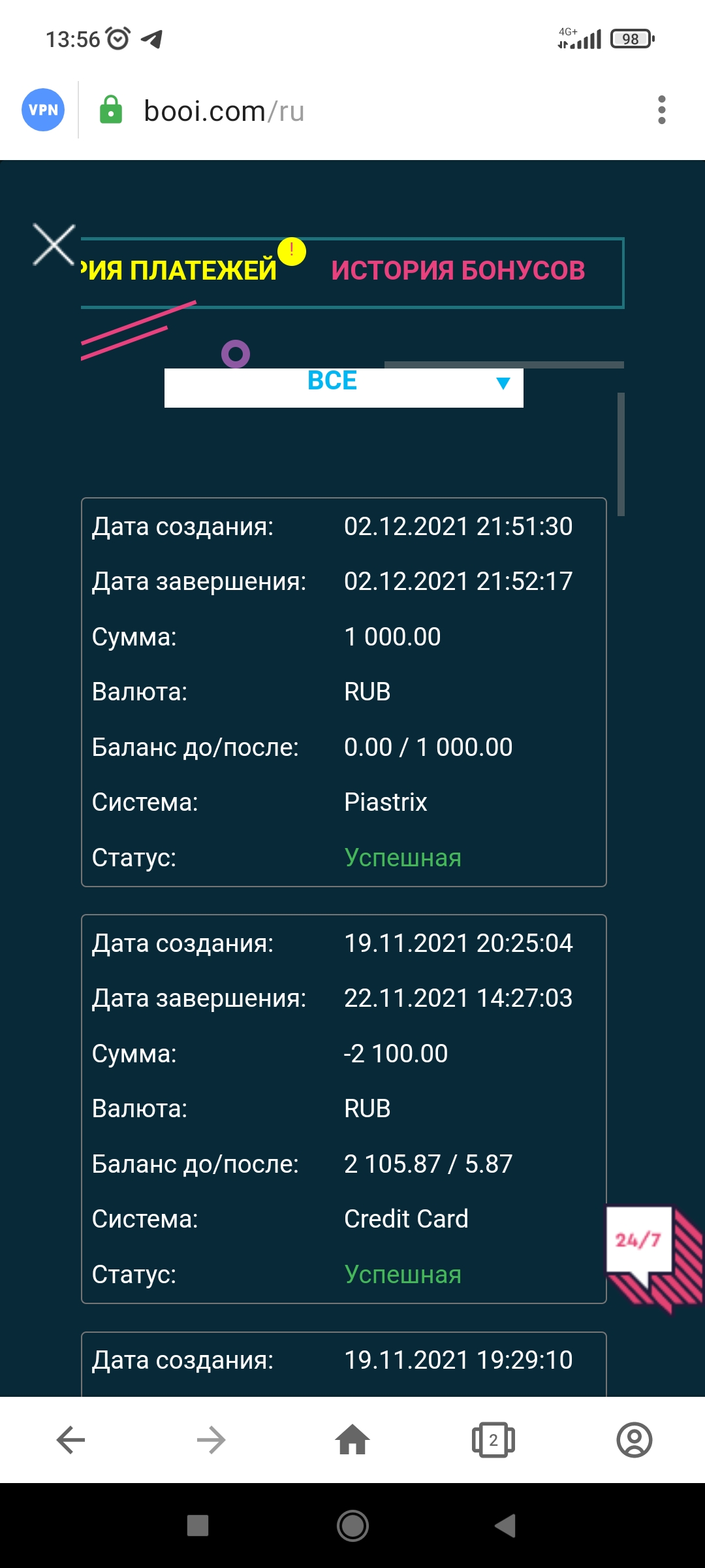 1) Любой бонус код требует подтвержденный E-mail + телефон в профиле игрока