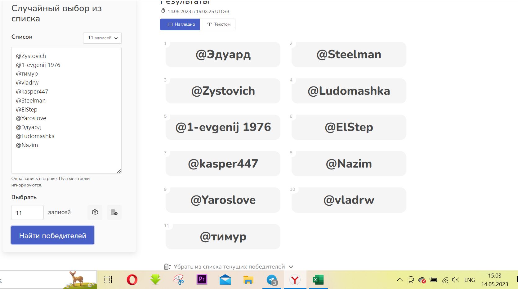 Спасибо за конкурс и всех победунов поздравляю 🍾
