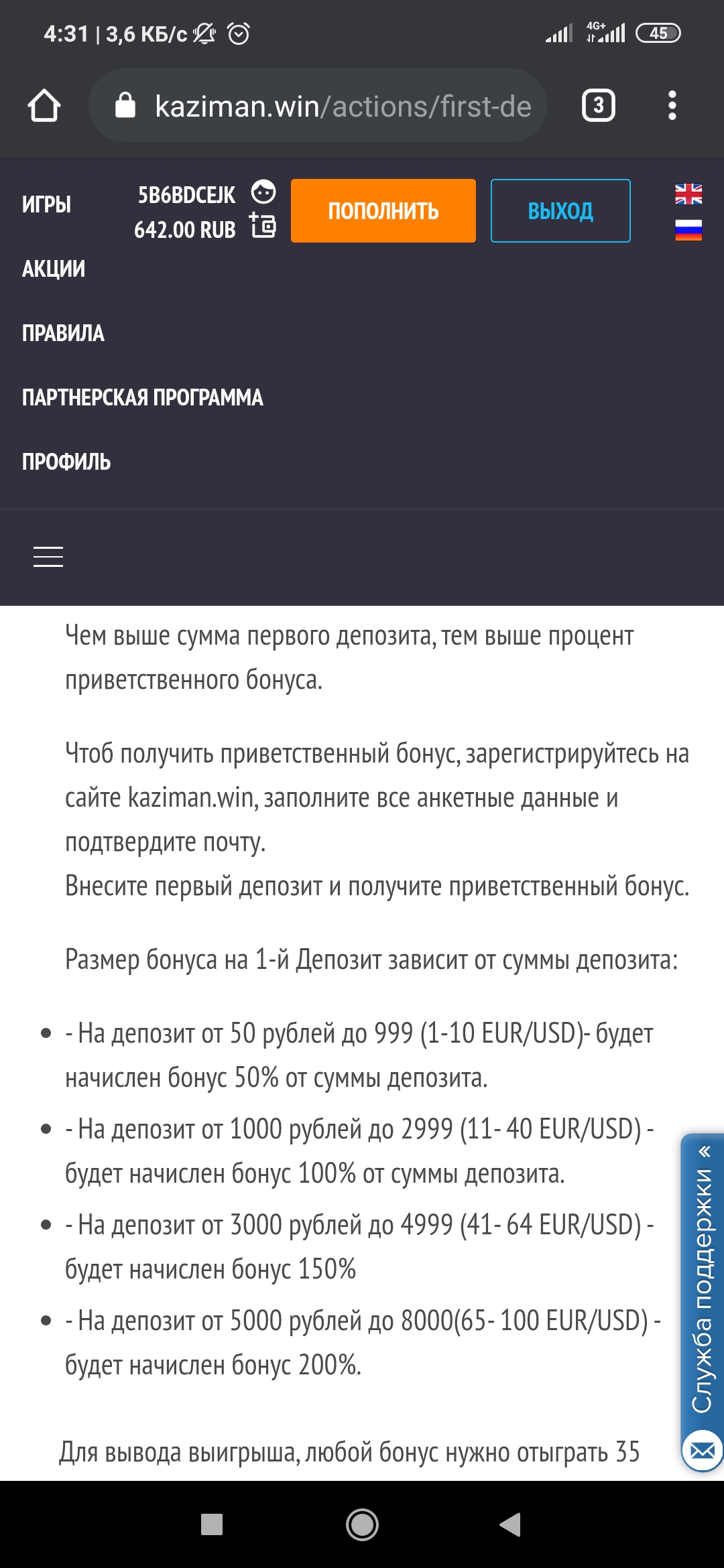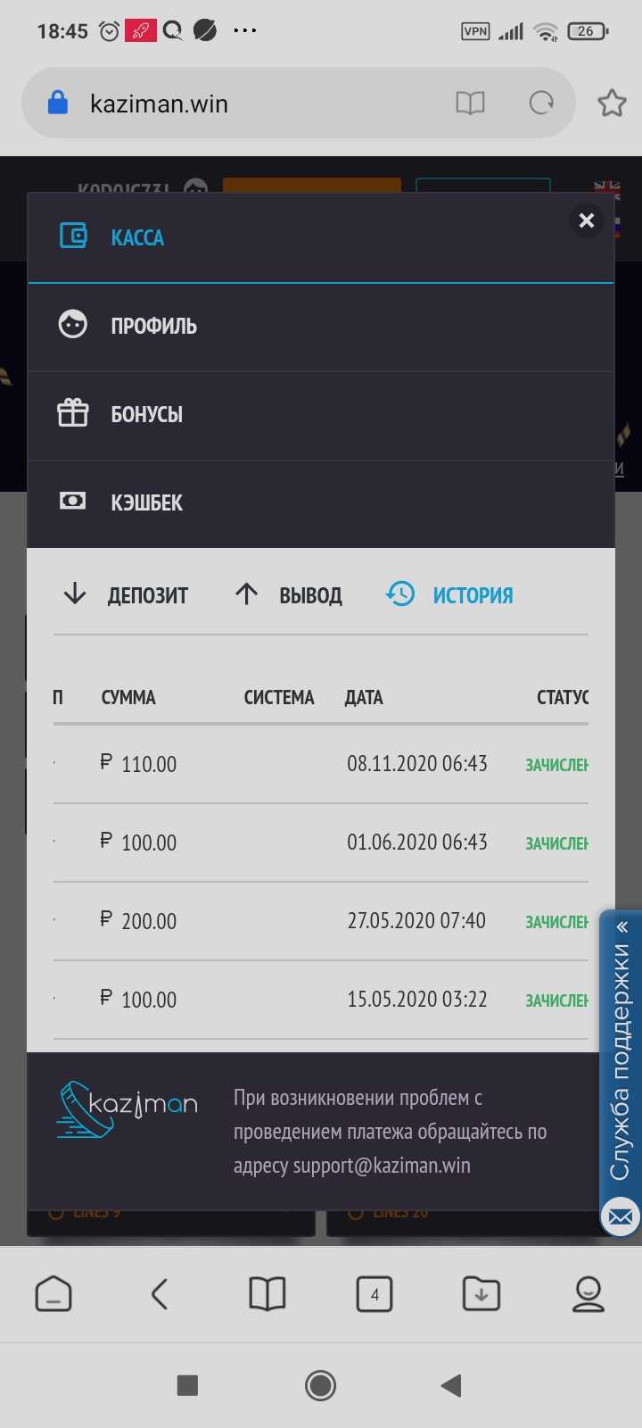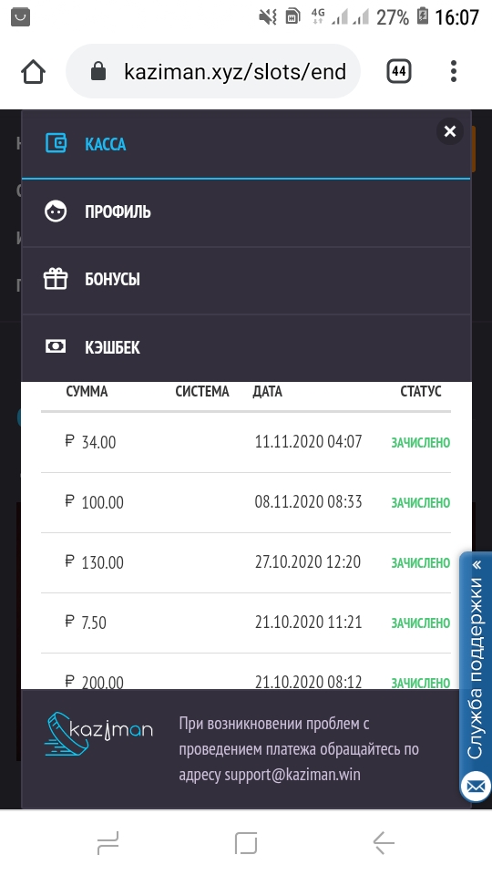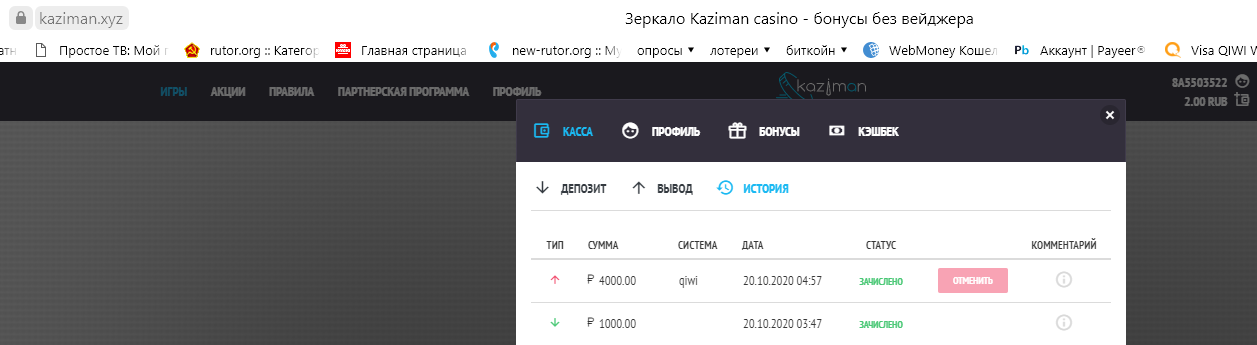 Порядок действий - если у вас уже есть депозит в казино Kaziman с 20 октября, делаем скрин наличия депозита -