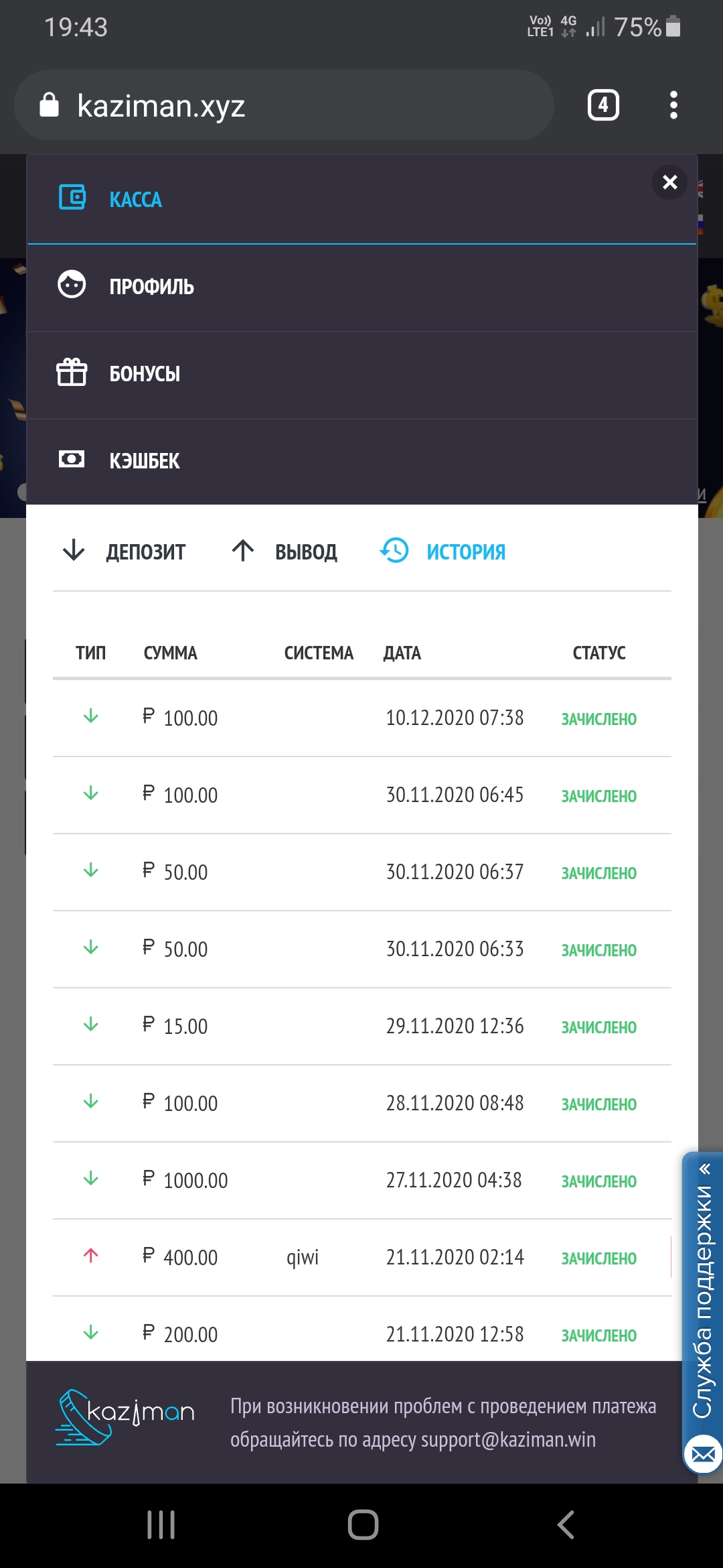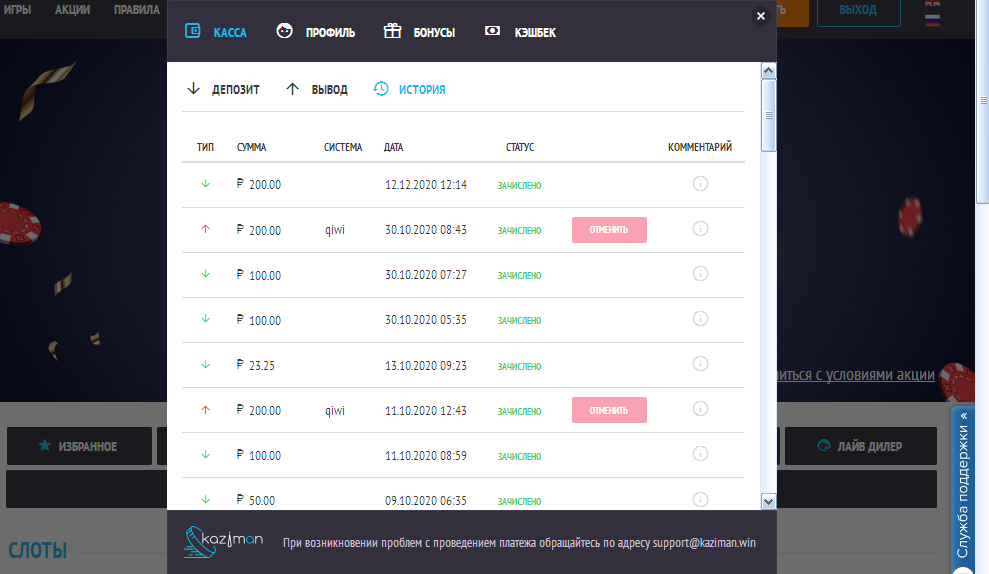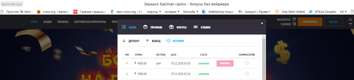 Порядок действий - если у вас уже есть депозит в казино Kaziman с 1 декабря, делаем скрин наличия депозита -