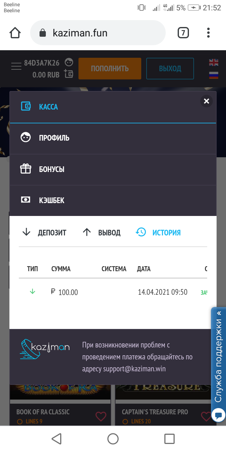 Конкурс Раздача промокодов от казино Kaziman 8.0