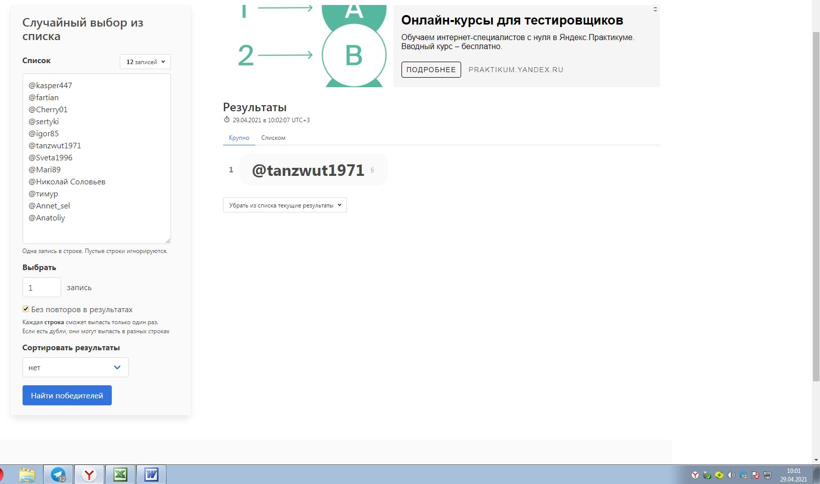 Если до 30 апреля не разберет промокоды, разыграем все среди имеющихся участников и такой конкурс больше не будем проводить...