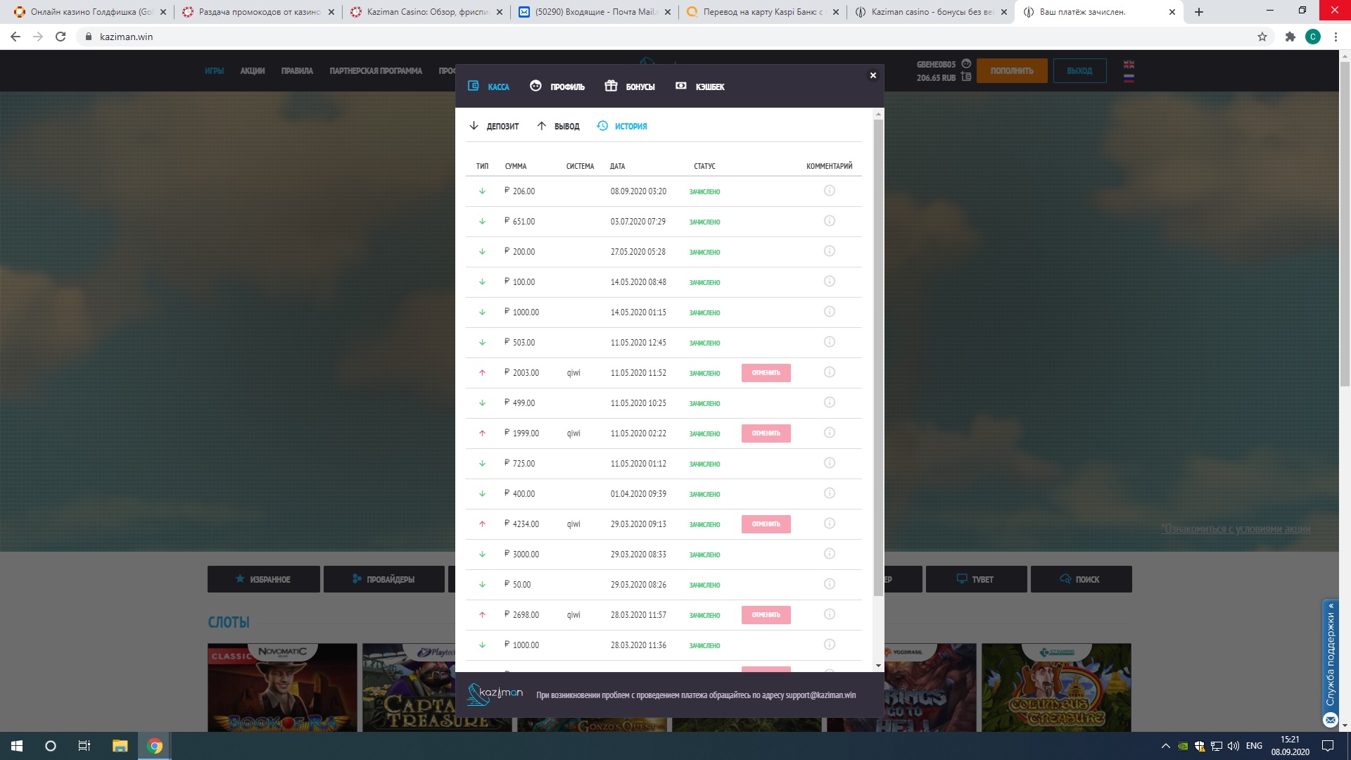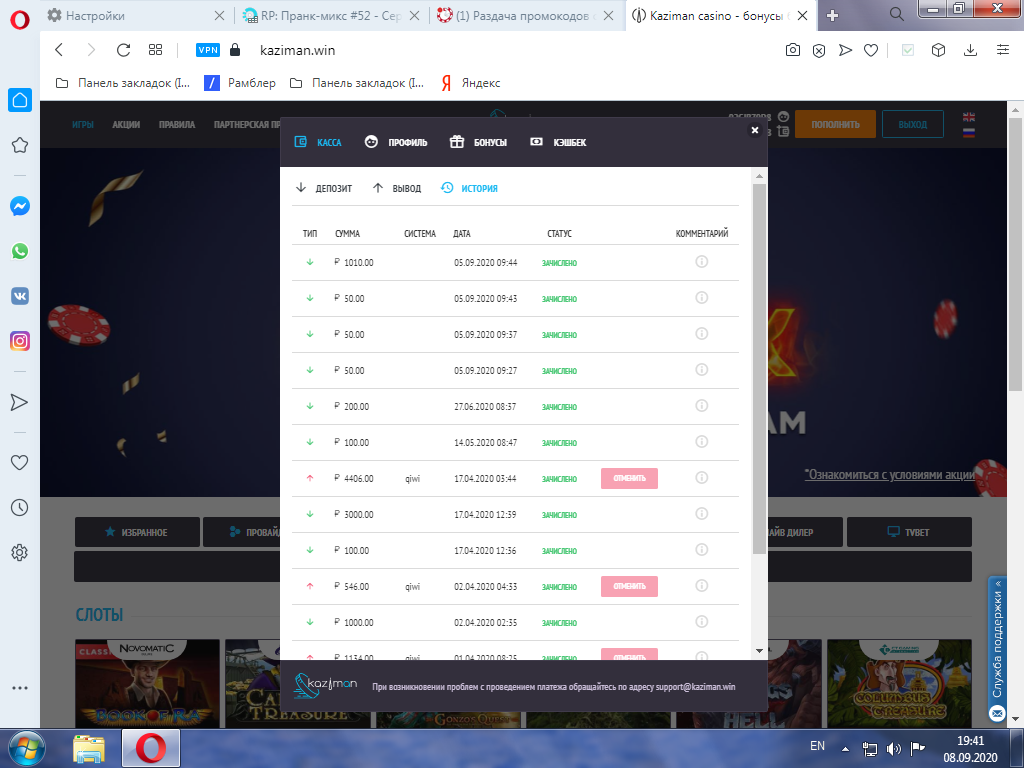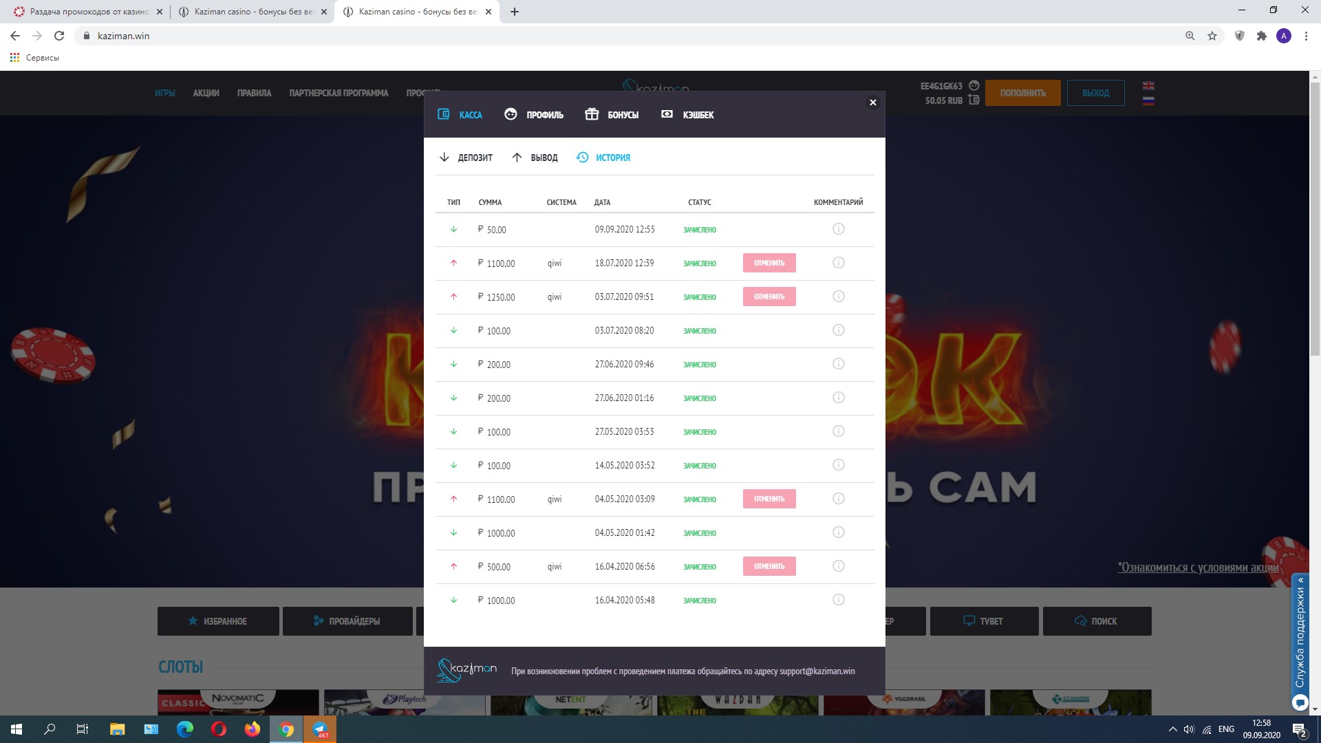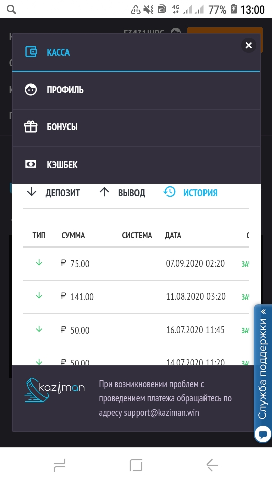 Порядок действий - если у вас уже есть депозит в казино Kaziman в этом месяце, делаем такой скрин -